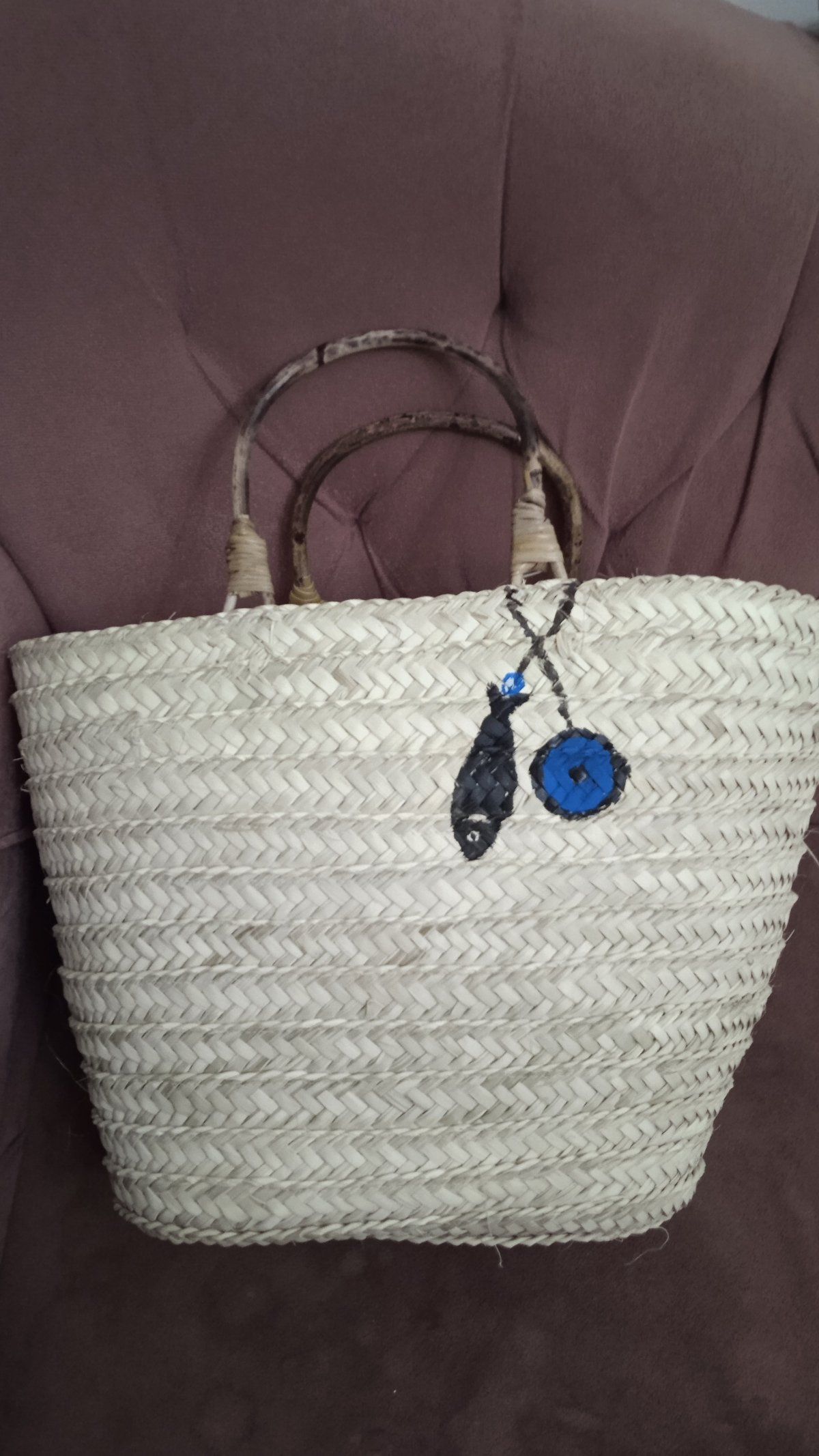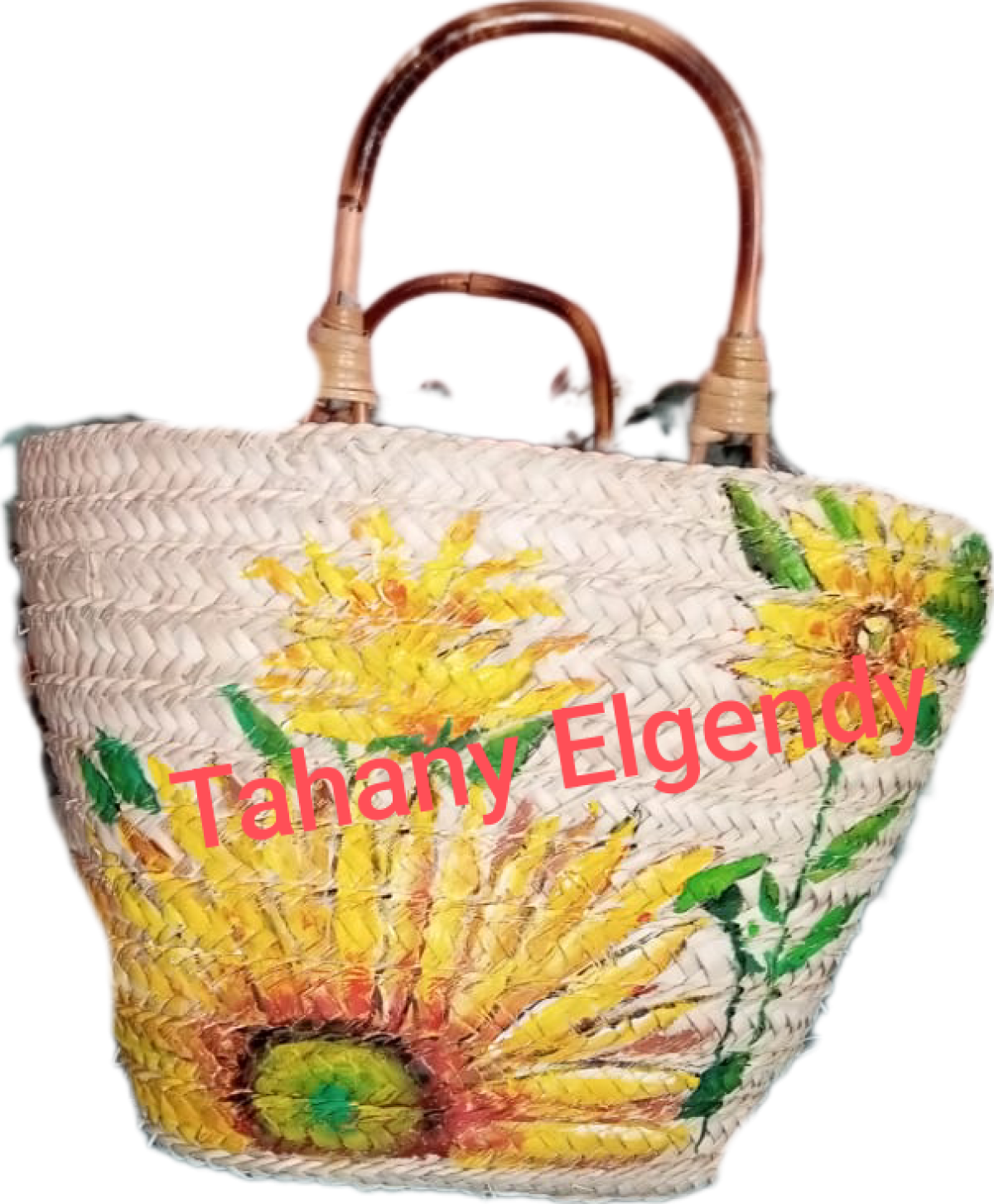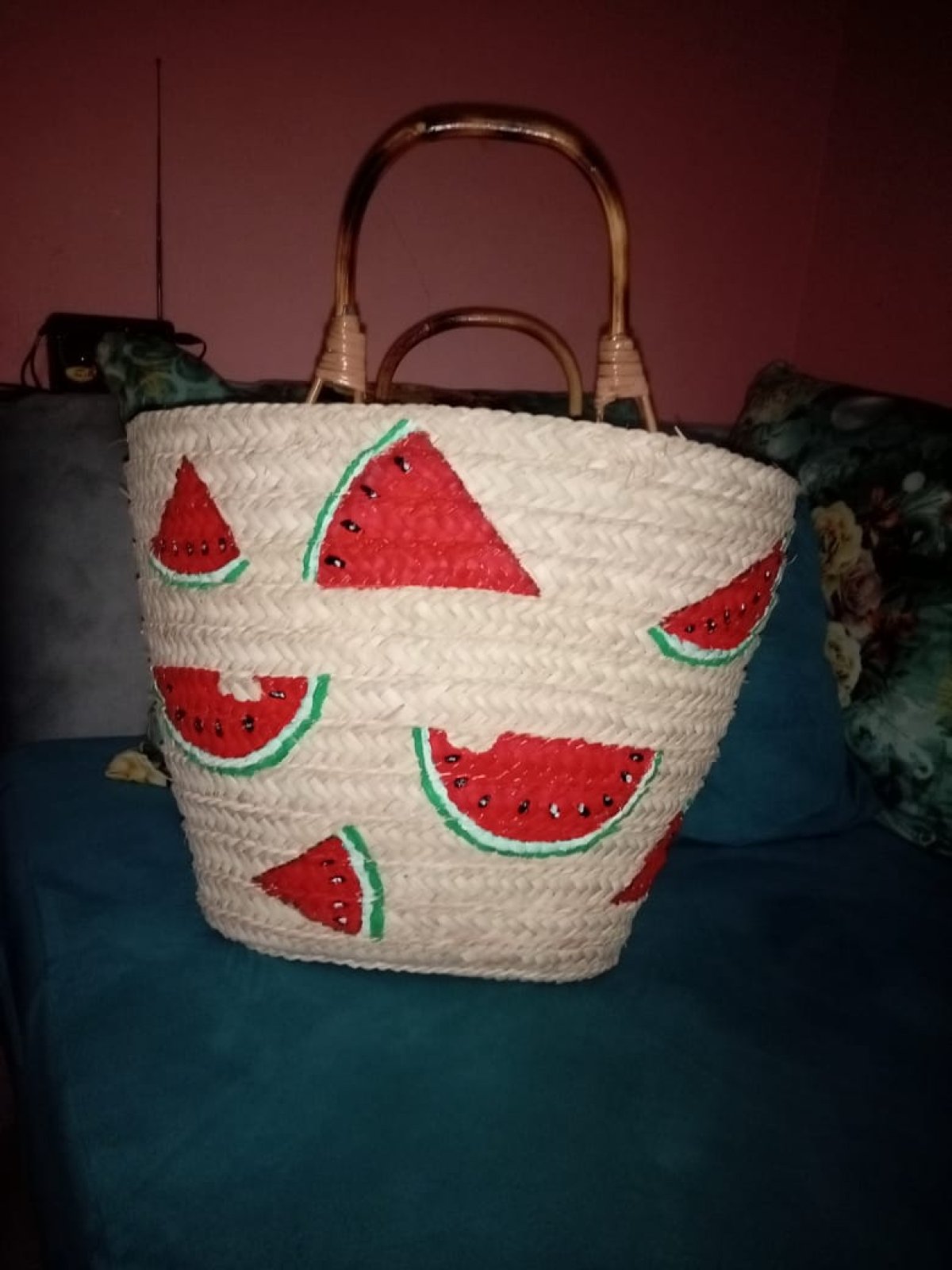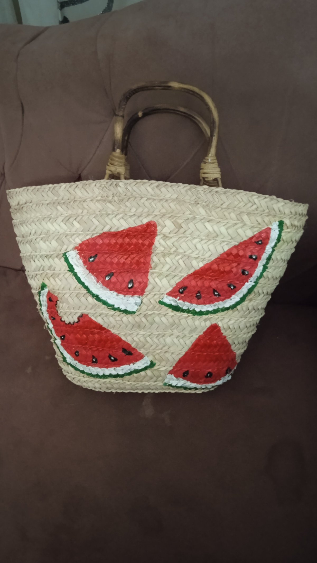 شنطة خوص مبطنة من الداخل رسم يدوي ألوان ثابتة