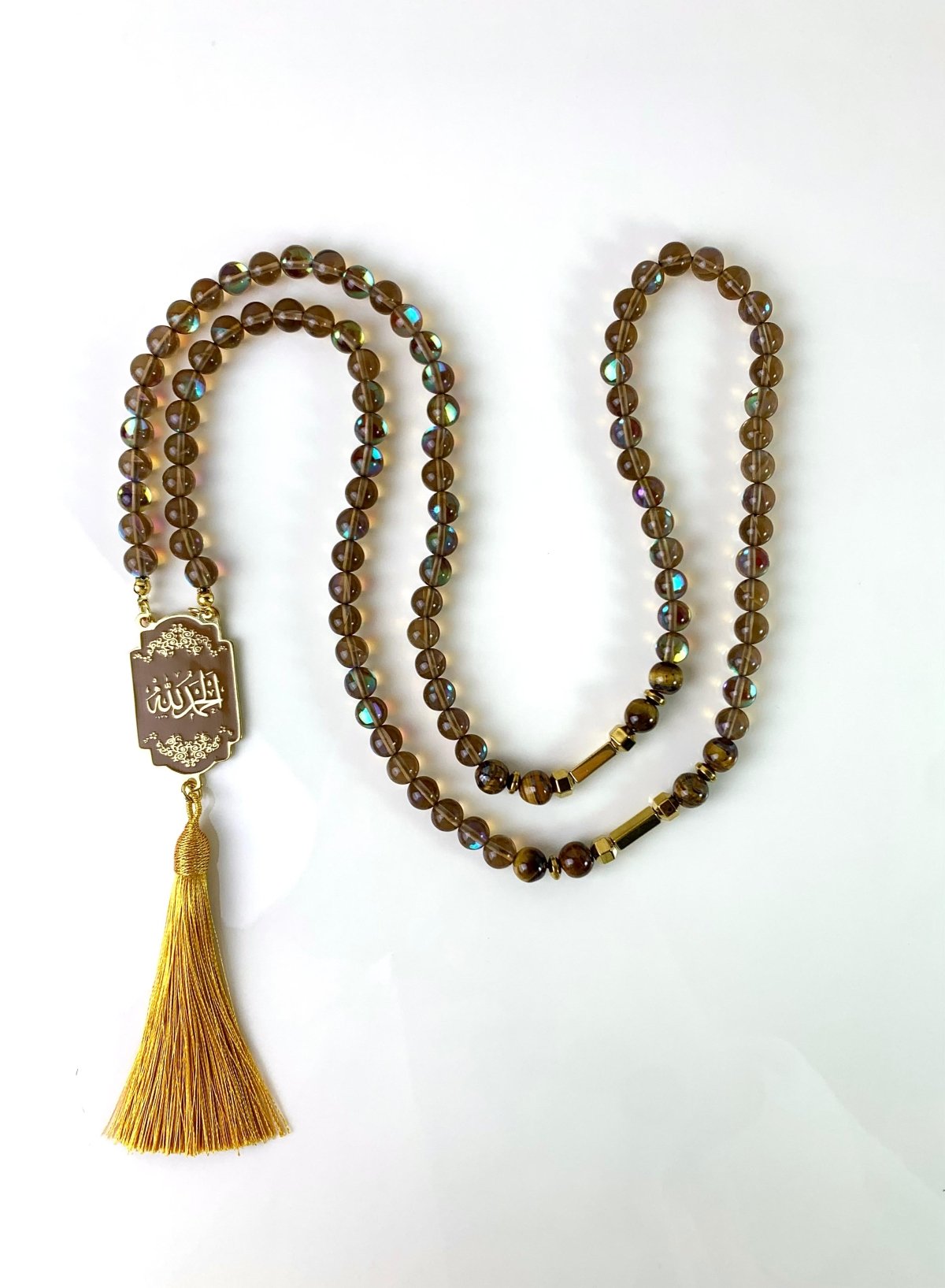 📿 مسبحة من حجر القمر والتايجر أي 📿- 99حبه 📿فواصل هيماتايت 📿-دلاية الحمدلله 📿-شرابة حرير 📿- مغلفة بشكل جميل في حقيبة هدايا تحمل علامتنا التجارية، مما يجعلها هدية رائعة في أي مناسبة.