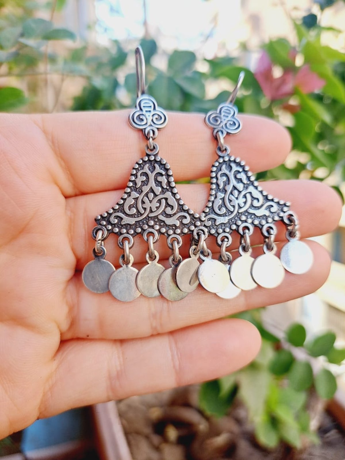 حلق فضة تصميم بدوي صنع باتقان من الفضه عيار ٩٢٥