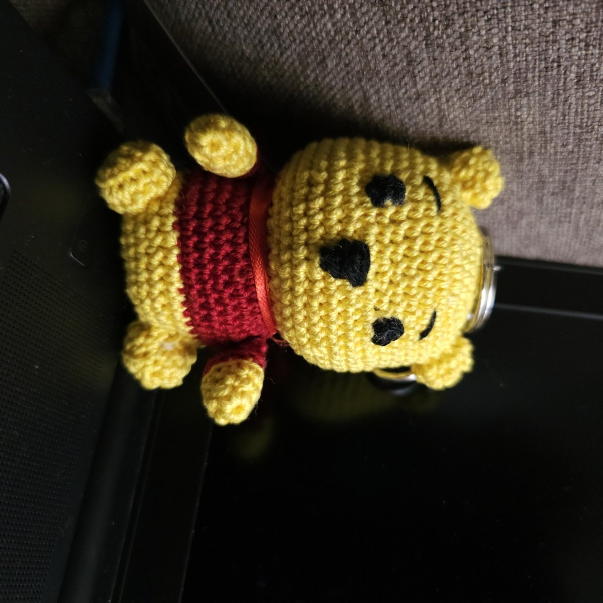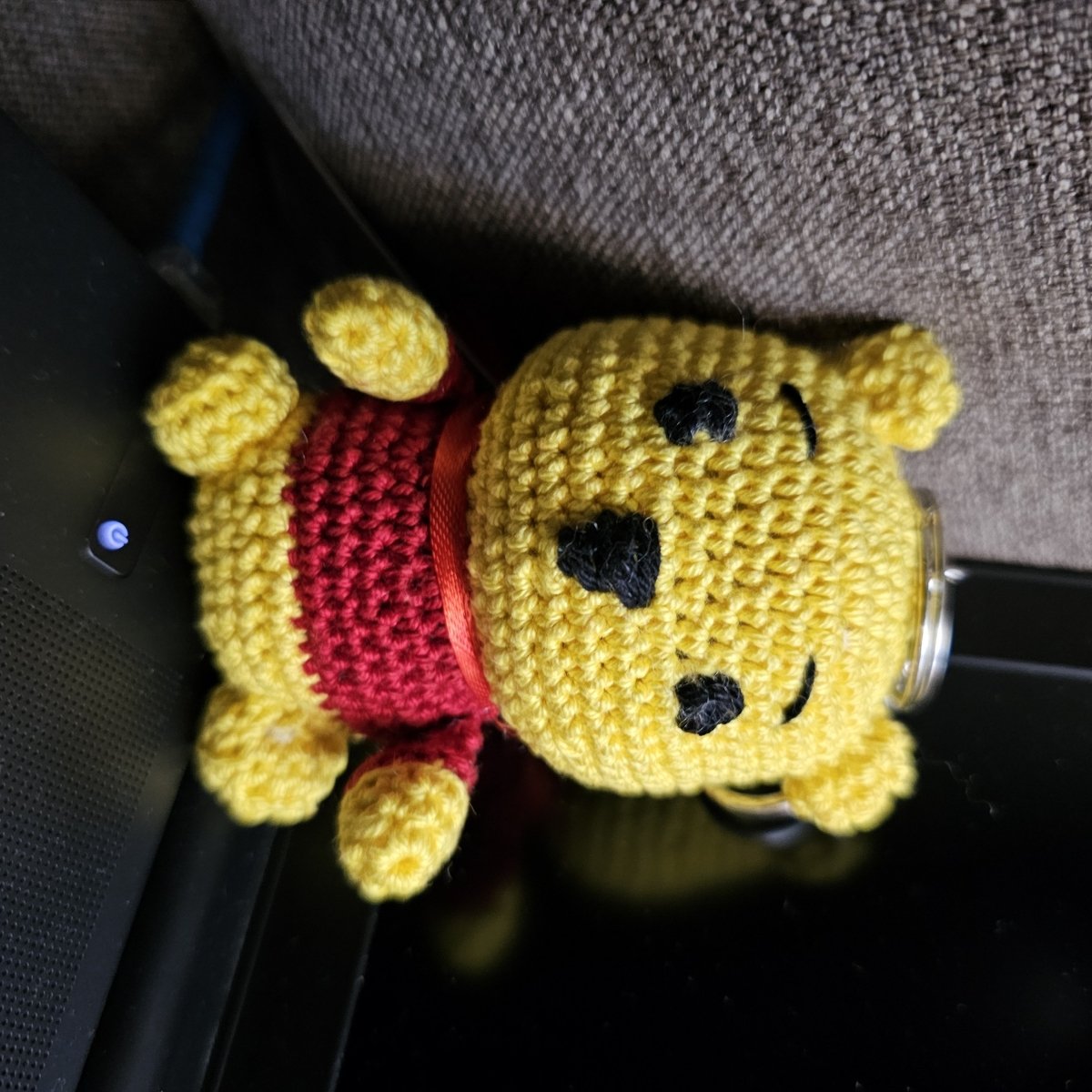 دمية ويني ذا بوه صغيرة يمكن أن تكون سلسلة مفاتيح أو يمكنك تعليقها في سيارتك دمية كروشيه مصنوعة من خيوط قطن مصرية ارتفاعها 10 سم