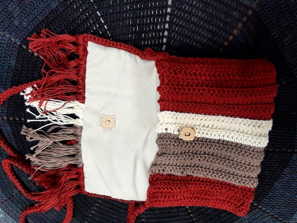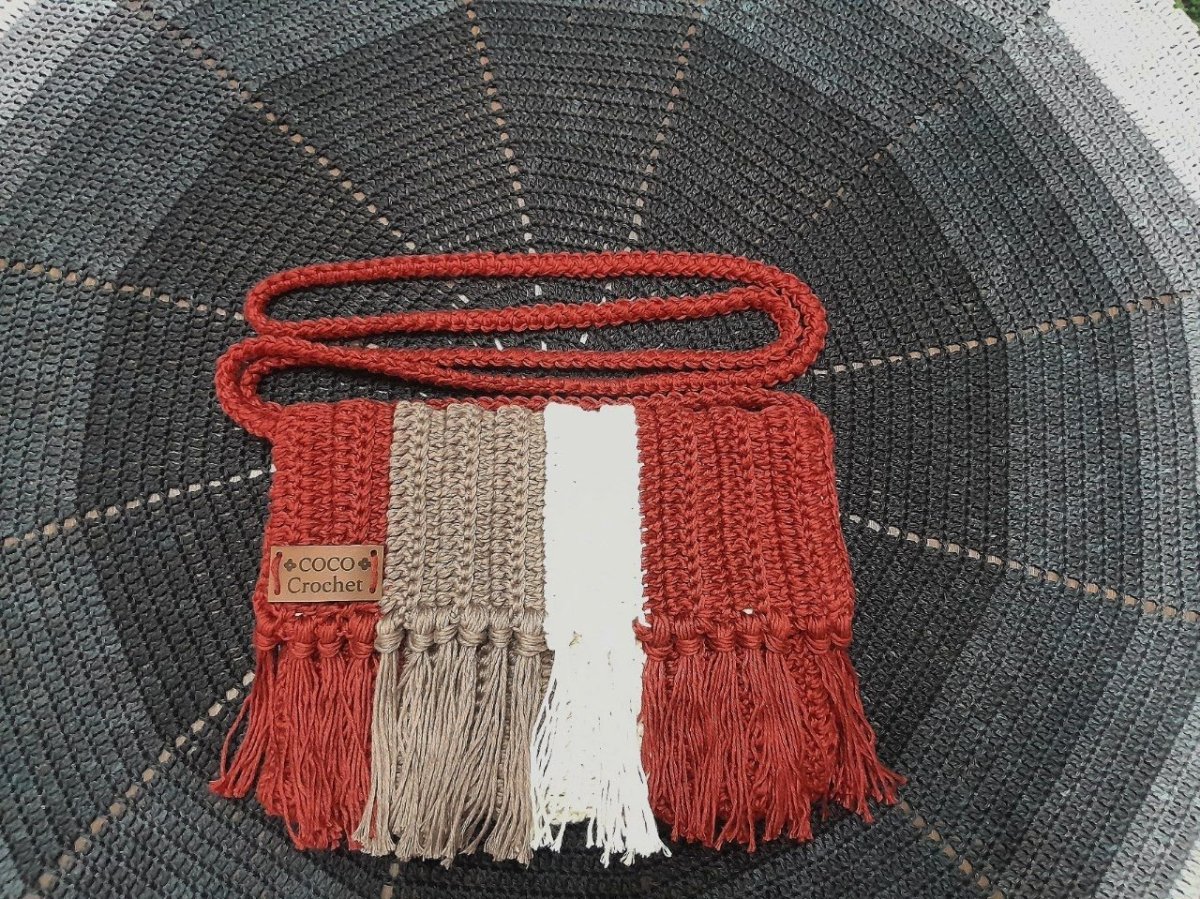 شنطة كروشيه صناعة يدوي من خيوط قطن ناعمة وخفيفة وقوية جداا متاح تغيير اللون حسب الرغبة مقاس متوسط تنفع تكون للكتف و تنفع كروس لان اليد بتقصر وتطول حسب رغبتك مبطنة وتستحمل جداا مختلفة ومميزة