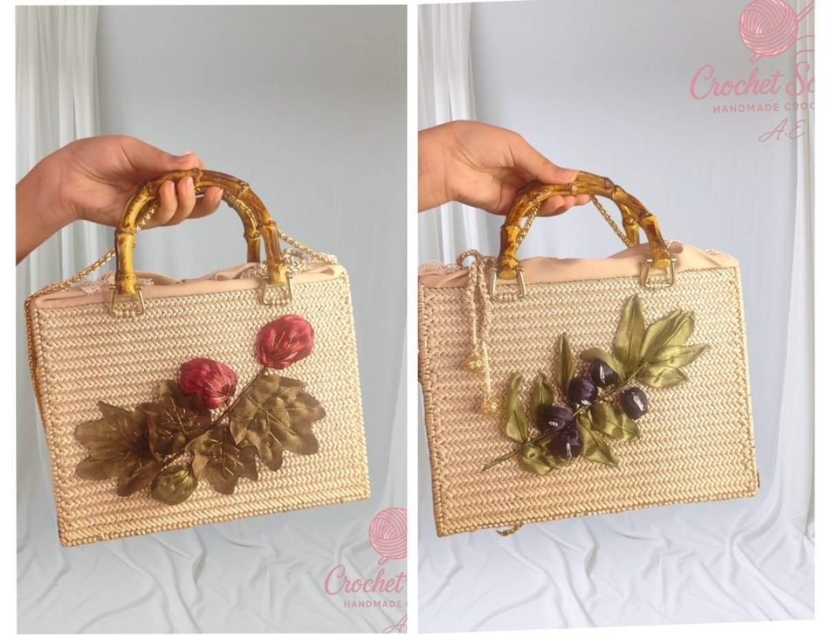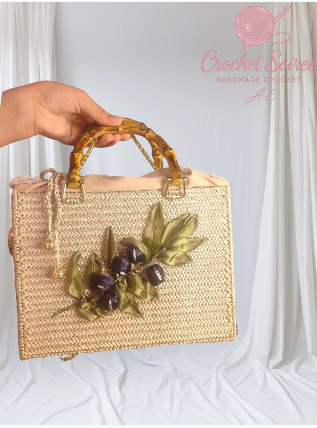 شنطة التين والزيتون شنطة كانڤا بخيوط حرير مطرزة من الوجهين بشرائط الستان مقاسها عرض 25*طول20*عمق5سم الشنطة مبطنة من الداخل بستان مستورد وشرائط جبير