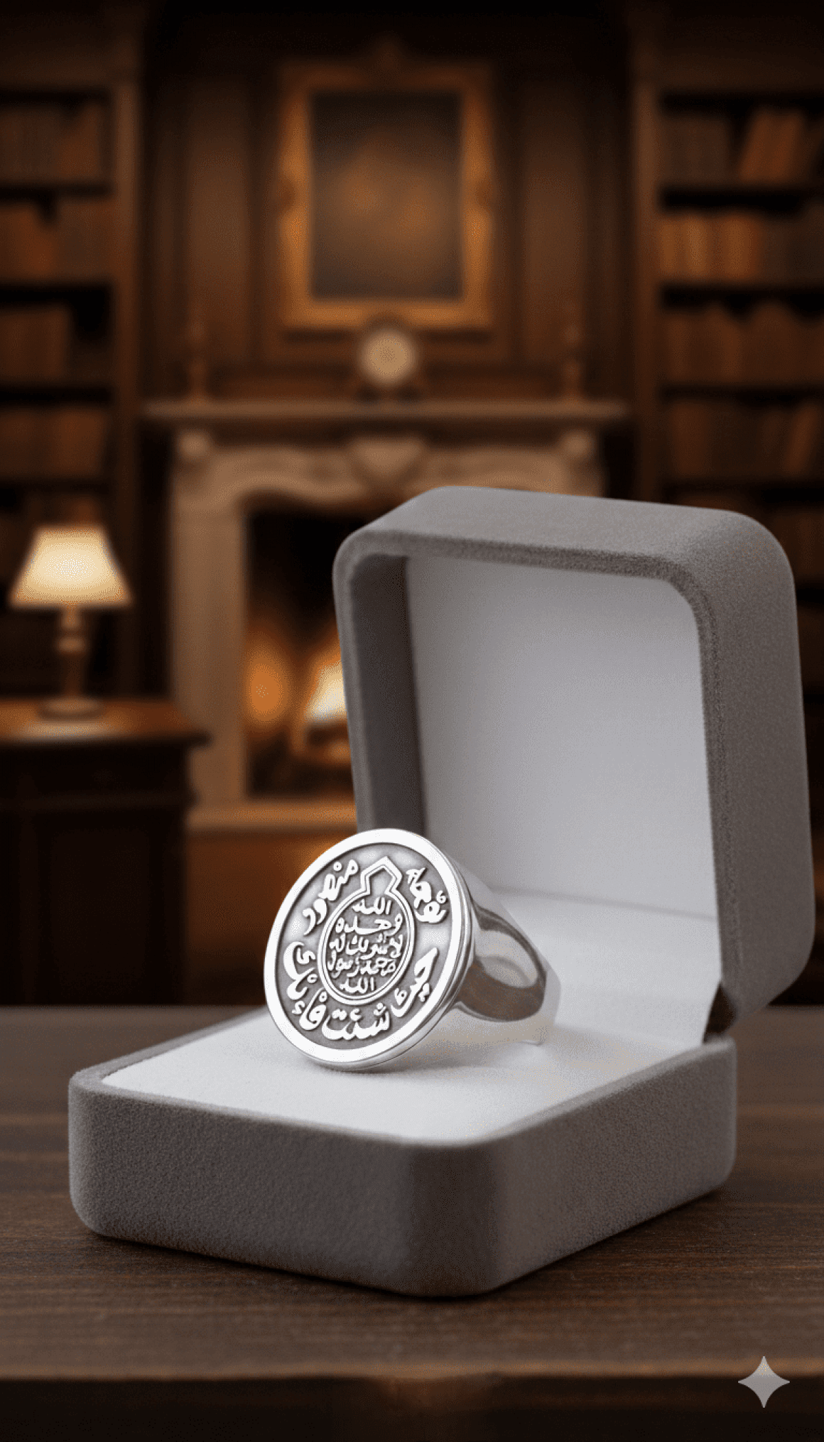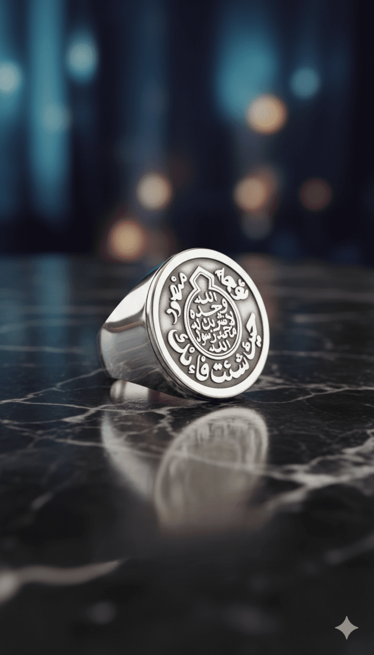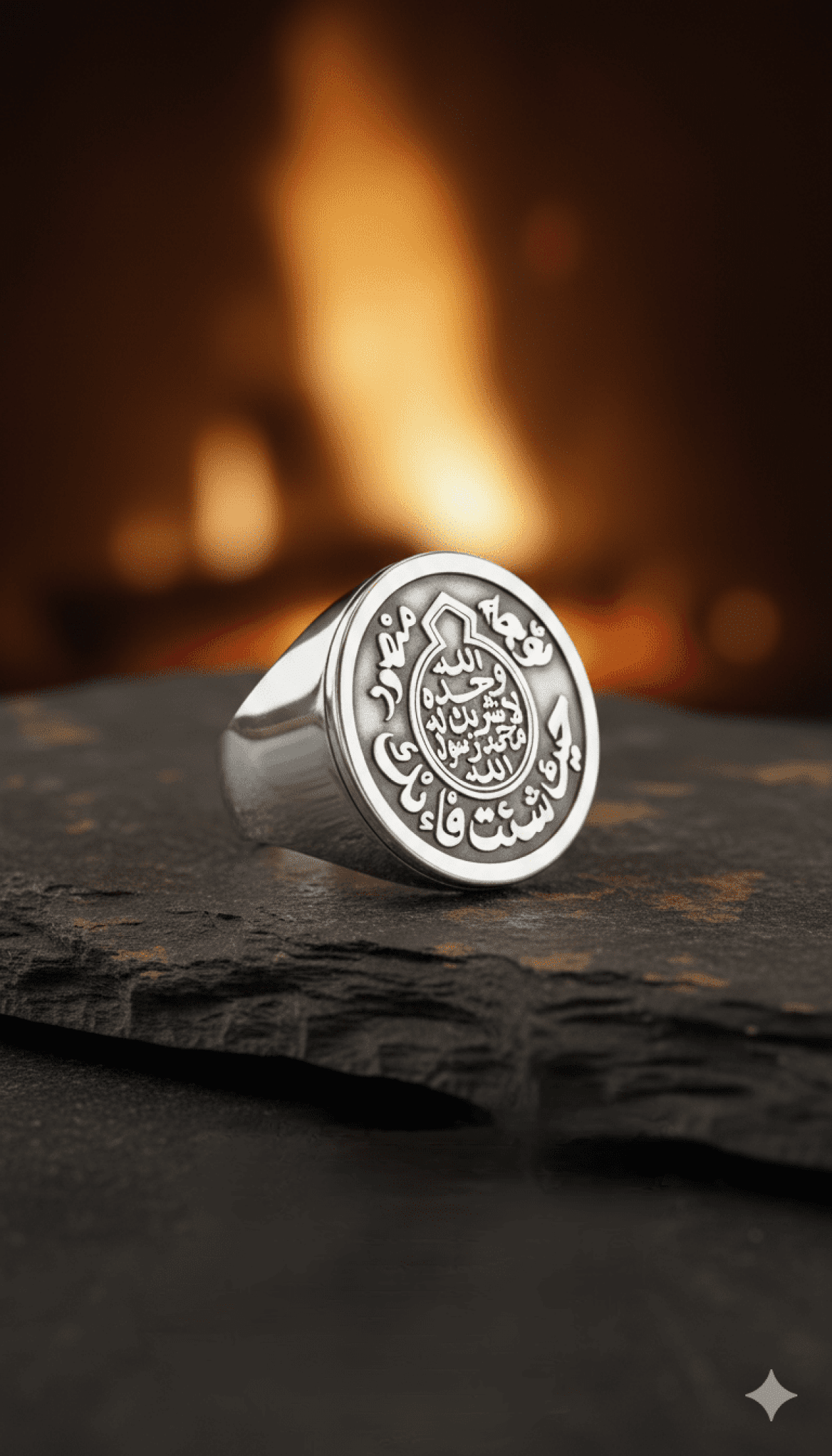 خاتم فضه عيار ٩٢٥ من التصميمات المميزة محفور بالخط العربي .. توجه حيث شئت فإنك منصور