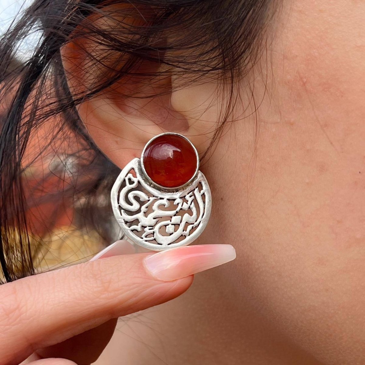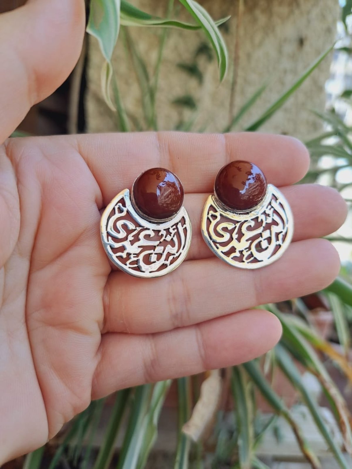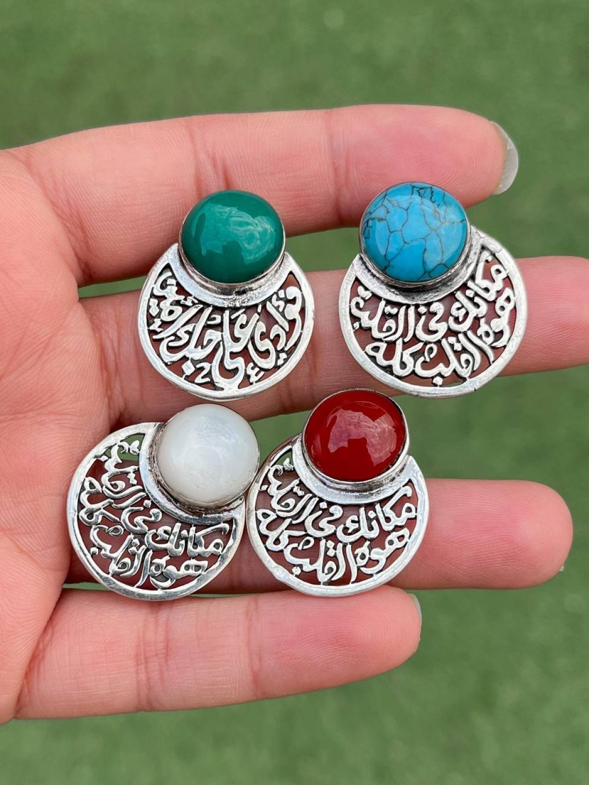 حلق فضه عيار ٩٢٥ مع احجار العقيق مصنوع بكل اتقان تصميم عربي مميز بكلمات مختلفة