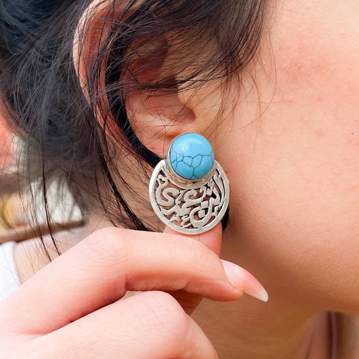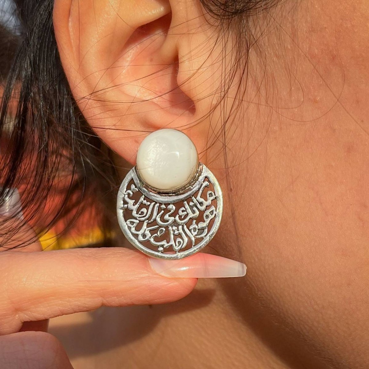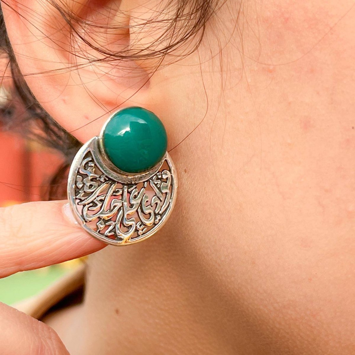 حلق فضه عيار ٩٢٥ مع احجار العقيق مصنوع بكل اتقان تصميم عربي مميز بكلمات مختلفة