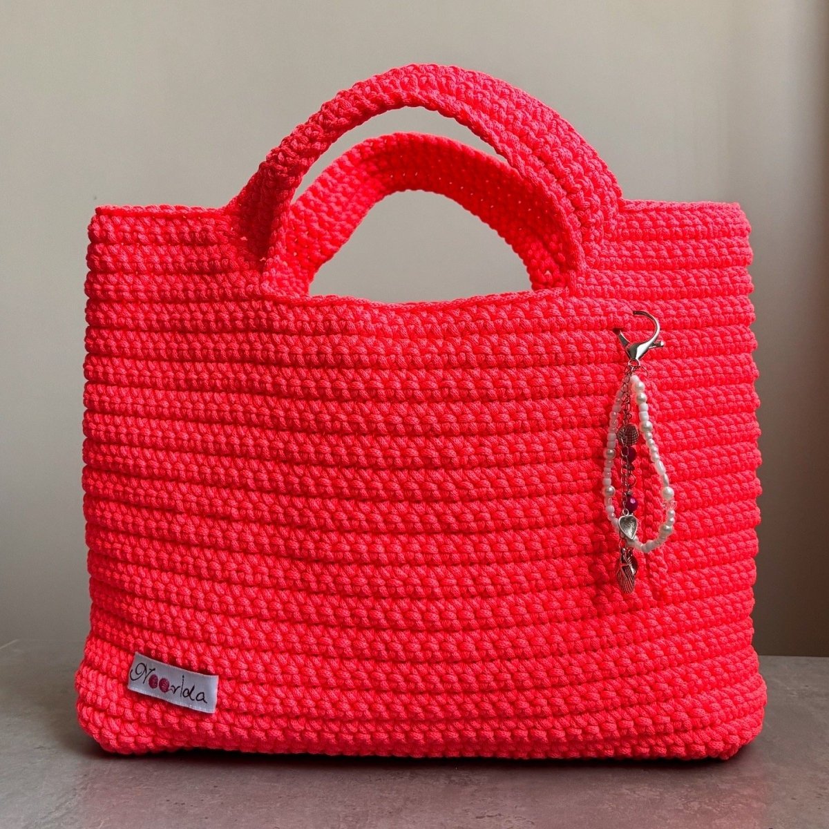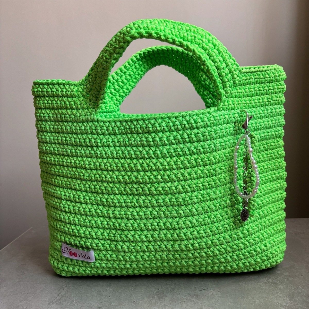 شنطة بحر مصنوعة بخيط فسفوري مصري حجم مناسب لحمل احتياجاتك بالكامل معها ميدالية بسيطة متوفرة باللونين البطيخي والأخضر متوفر قطعة واحدة من كل لون فوري مقاس : ٤٠ سم في ٢٢ سم