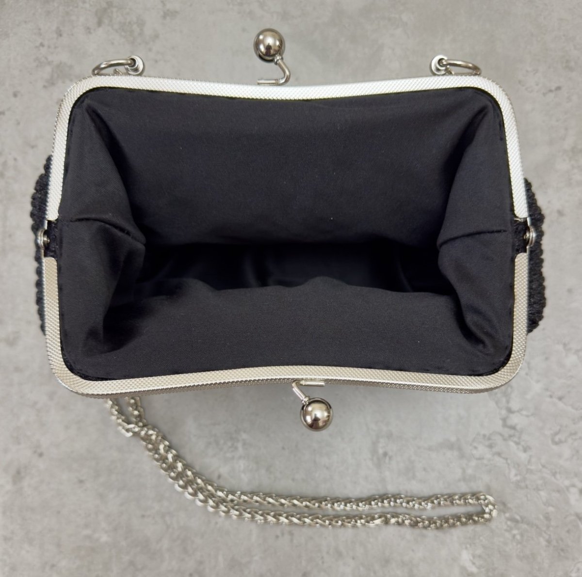 شنطة سواريه مصنوعة من خيط جليتر مصري مصممة بقفل معدني لحفظ مقتنياتك وسلسلة معدن لإعطائها مظهر شيك ومختلفة متوفرة باللون الأسود والفضي متاح فوري المقاس : ٢٤ سم في ١٢ سم
