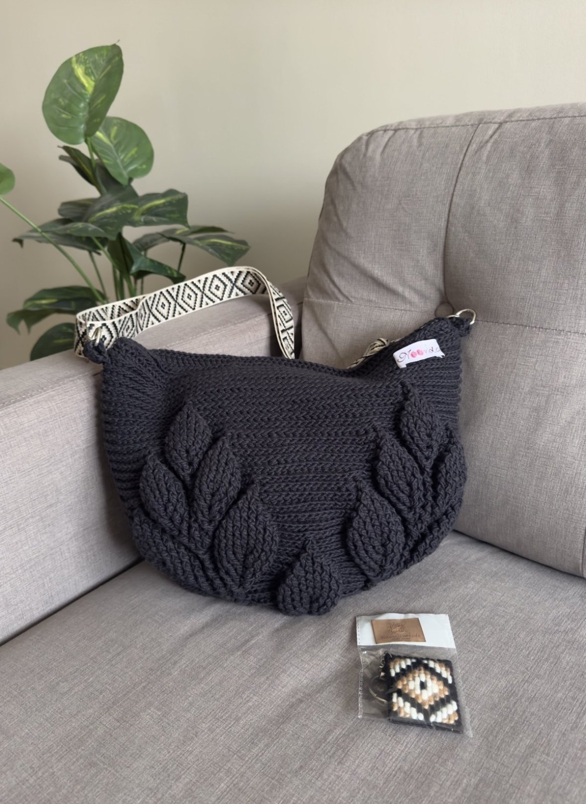 شنطة فروع الشجر المجسمة مصممة بخيوط قطن مصرية حجم مناسب ليوم طويل لحمل كل متعلقاتك يأتي معها ميدالية كانفا بلاستيك مصنوعة يدويا بنفس تصميم الذراع متاحة باللون الأسود والأزرق متاحة فوري المقاس : ٣٨ سم في ٢٨ سم