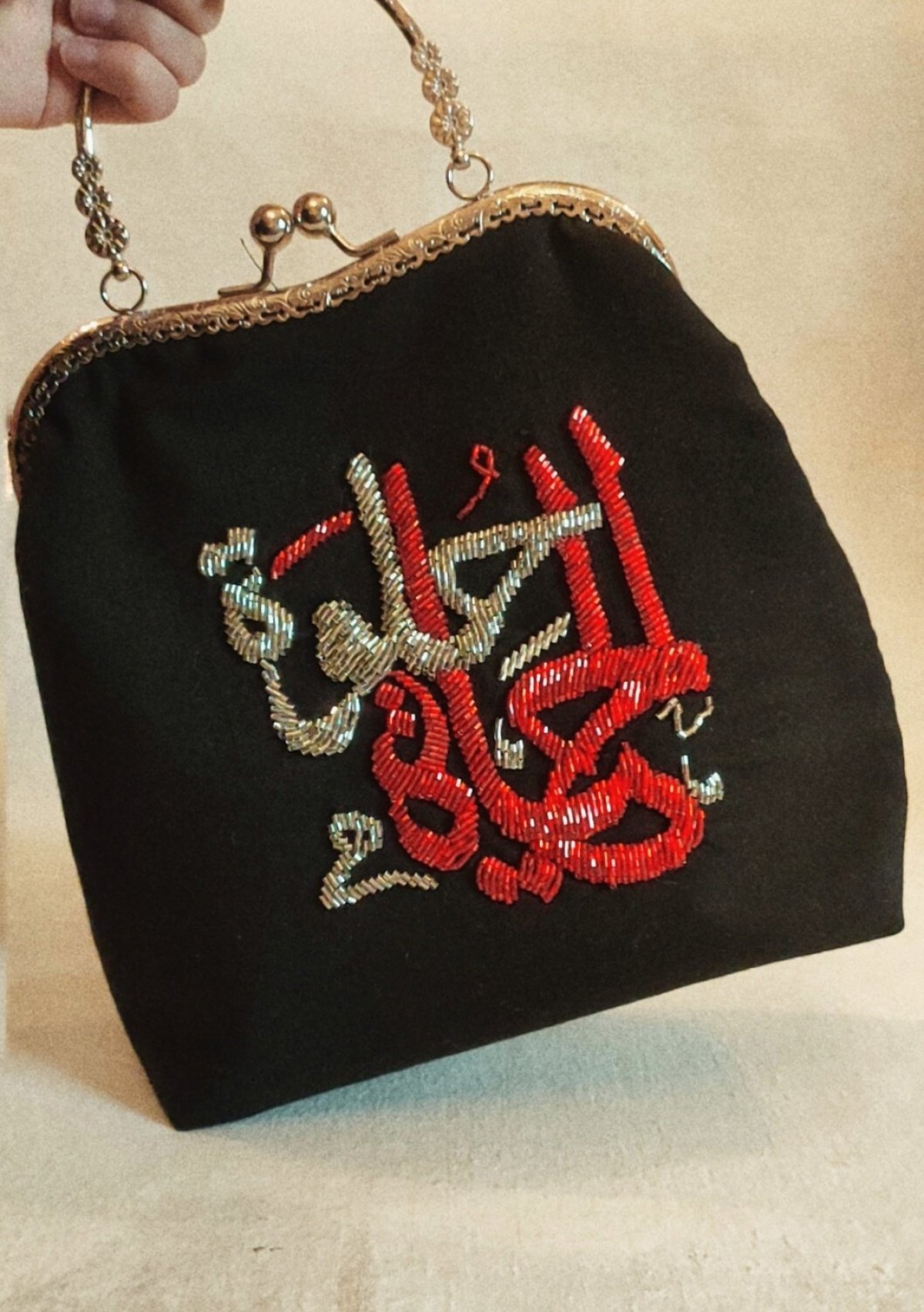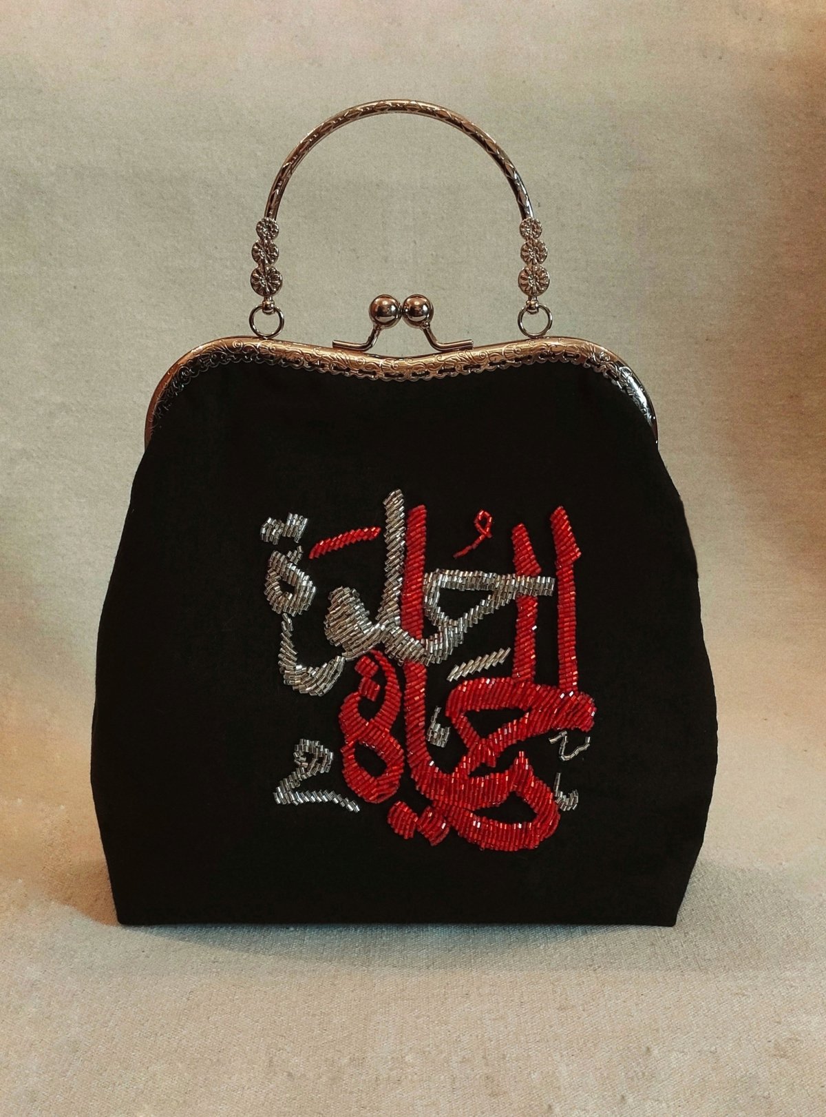 الخامات المستخدمة: كتان تركي، بطانة قطن مصري، إطار معدني، مقاس الحقيبة 20 سم * 25 سم