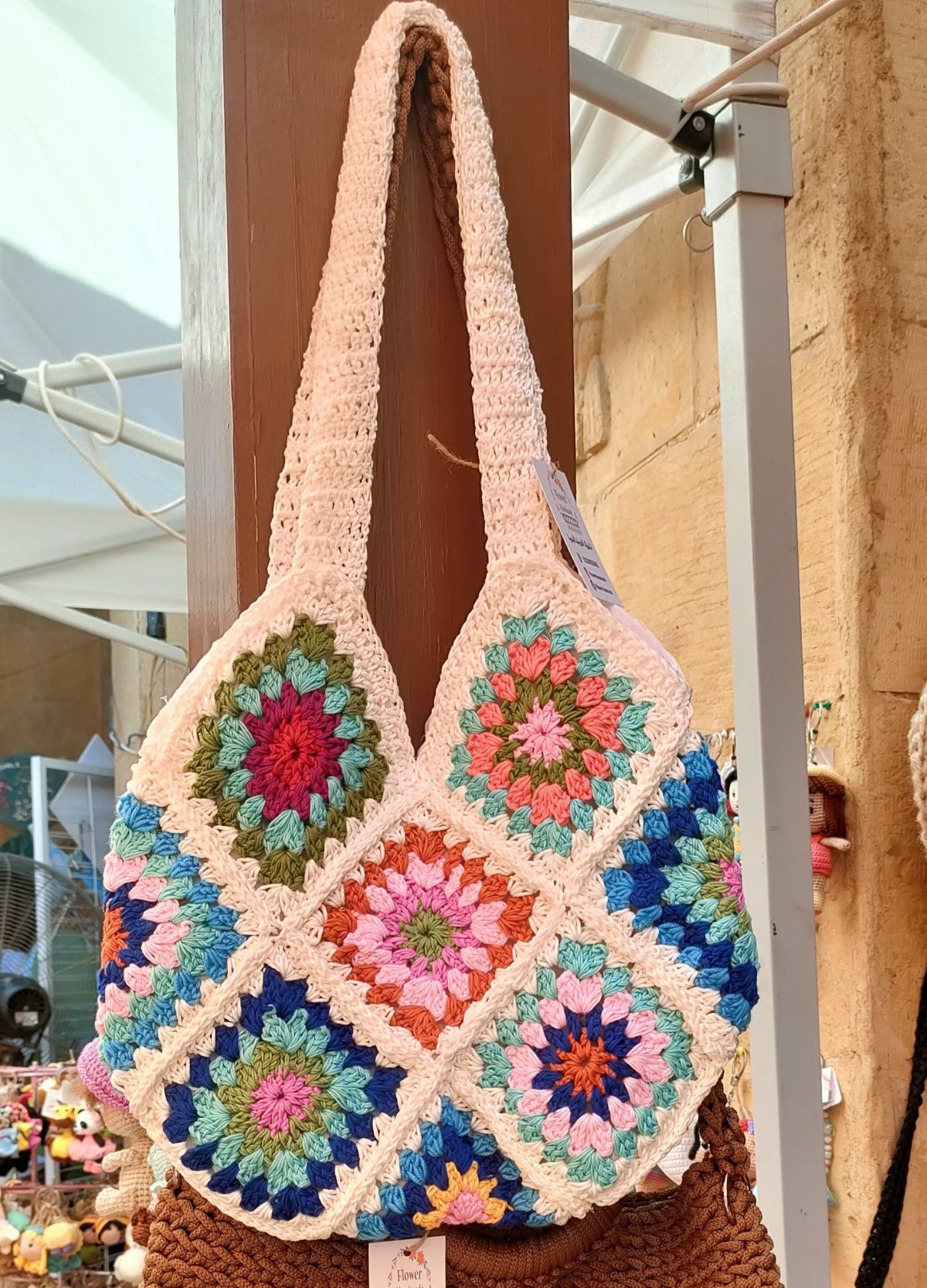 الخامة: خيط قطني المقاس: ٣٠*٣٥ سم بطانة قطنية