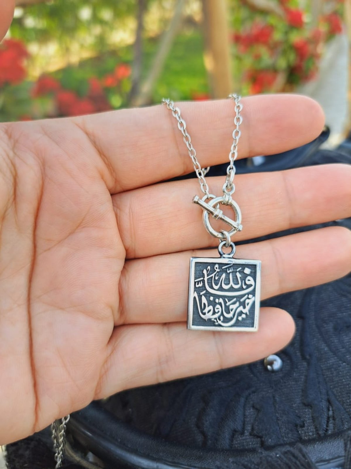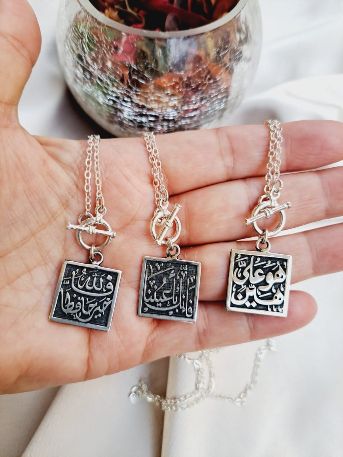 سلسلة من الفضة عيار ٩٢٥ تقدرو تختارو الجمله او الكلمات او الٱيه المفضل لكم و احنا علينا التنفيذ