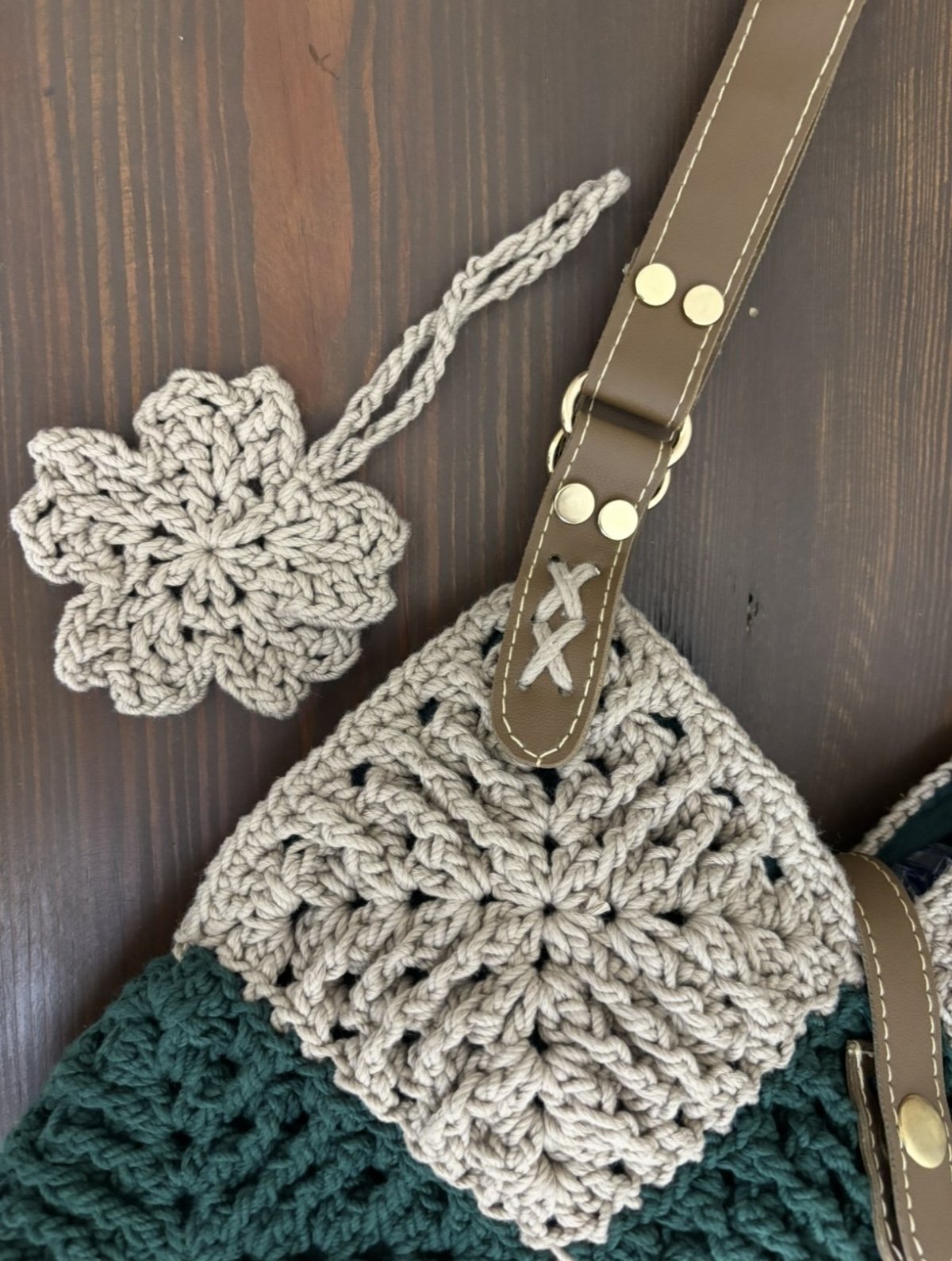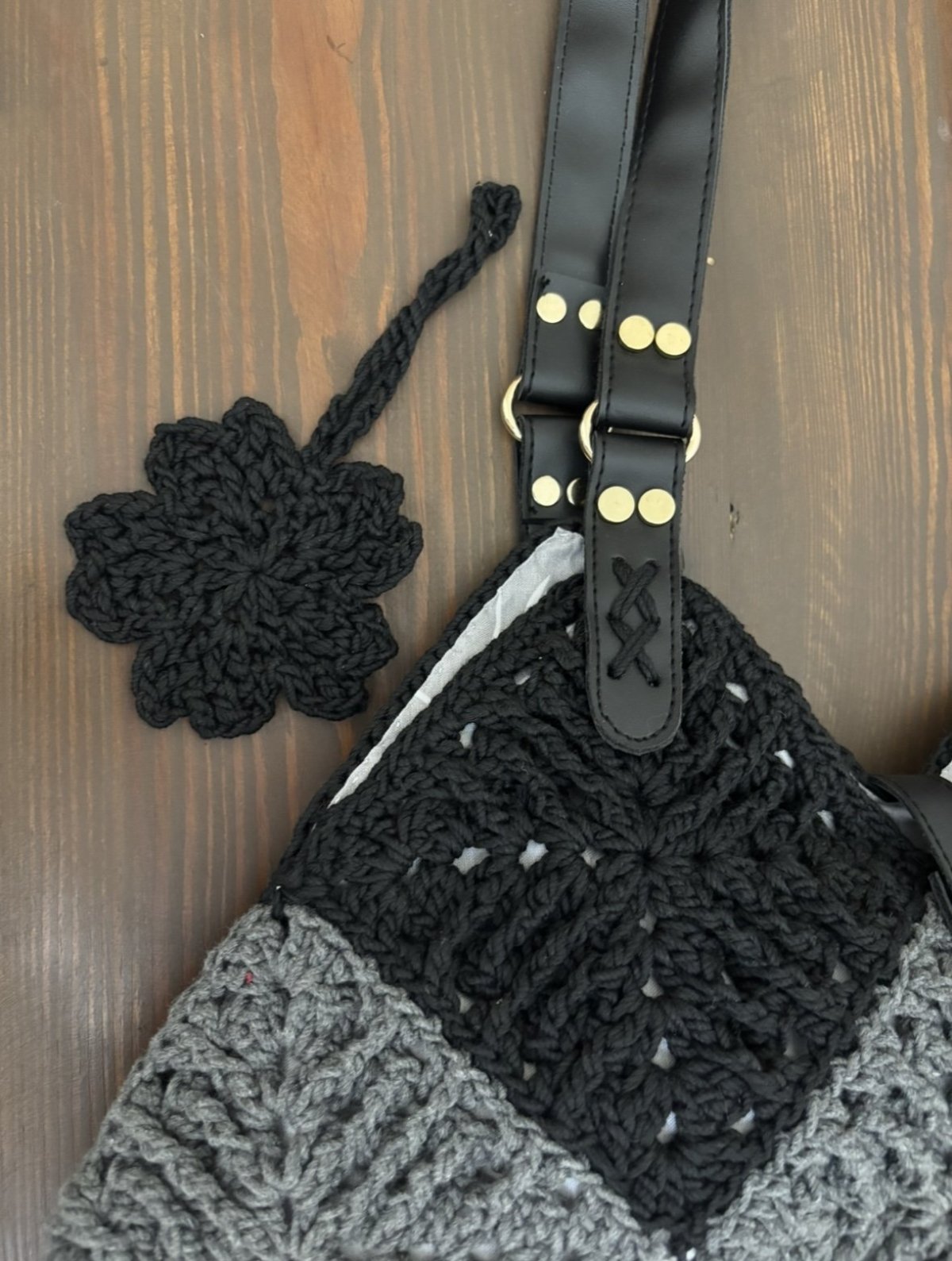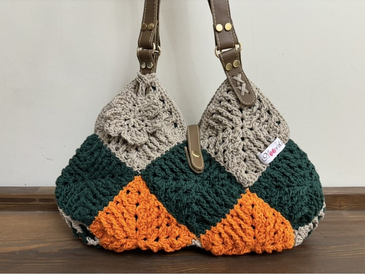 شنطة بمربعات جراني مصنوعة بخيط قطن مصري حجم كبير مناسب لجميع أغراضك مع لسان ويد جلد لإعطاء الشنطة شكل شيك متوفرة بدرجات الأبيض والأسود وبمزيج لون بيج وزيتي وبرتقالي متوفرة فوري قطعة واحدة من كل لون