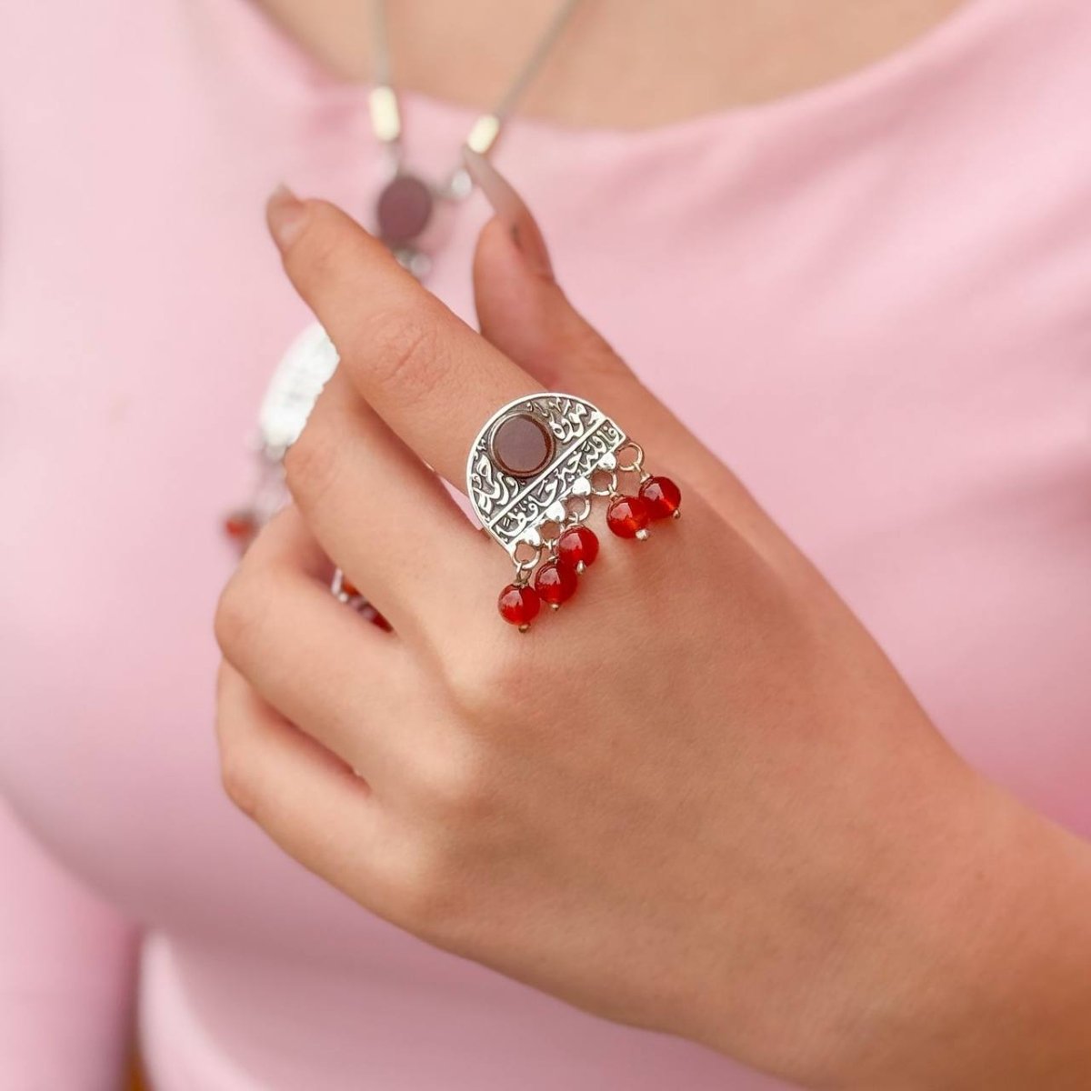 خاتم من الفضة عيار ٩٢٥ مع احجار العقيق الرائعة تصميم عربي