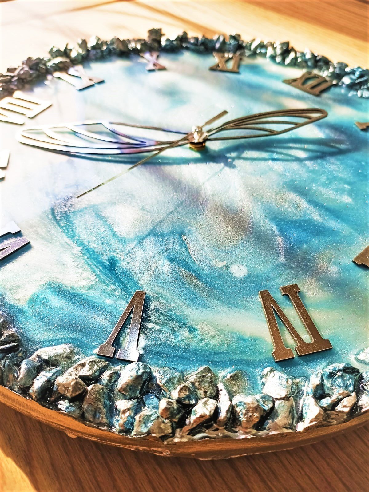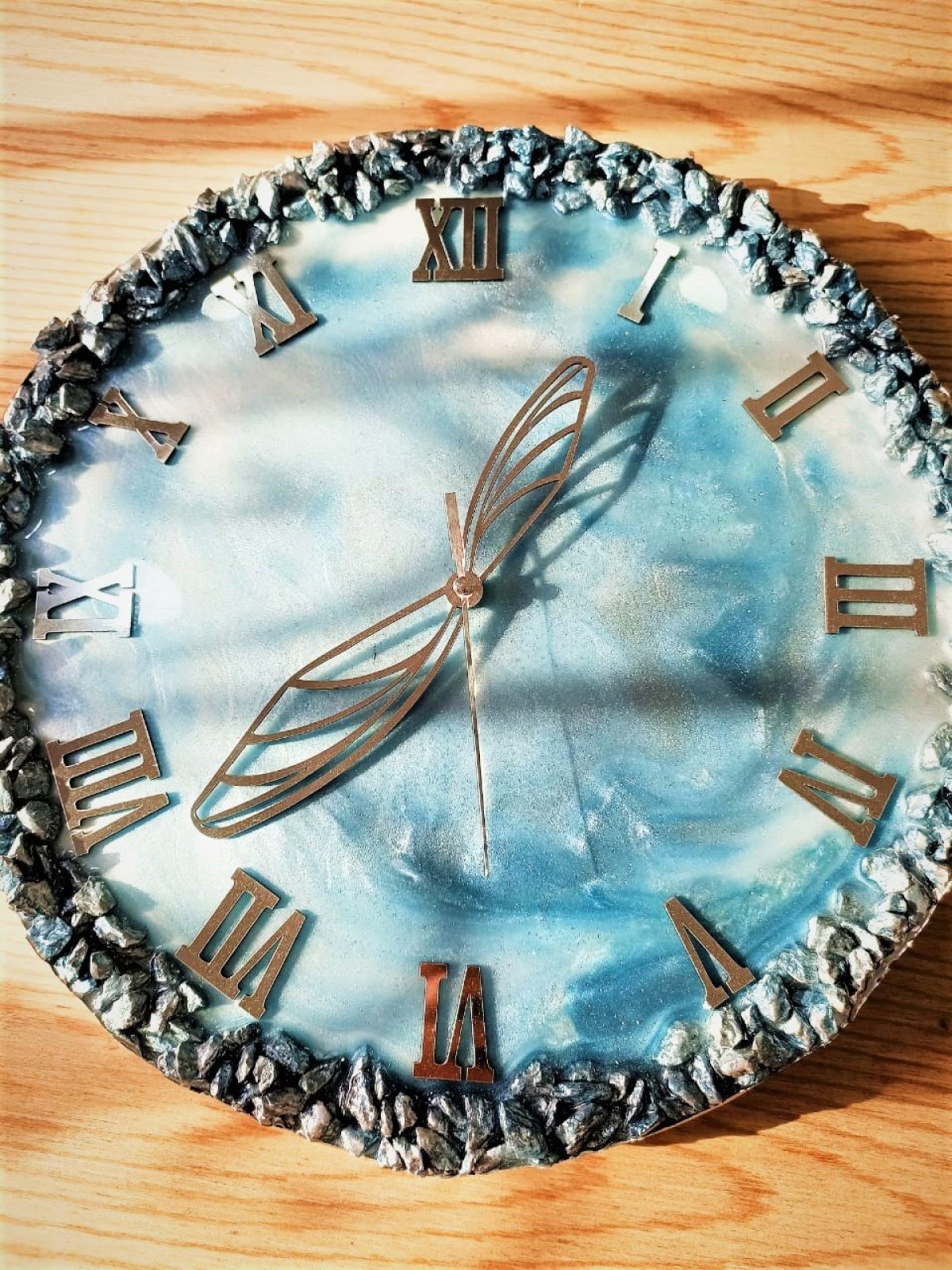 ساعة حائط ريزن لون زرقاء قطر 45 سم مطعمة بالاحجار الفضي والزرقاء ماكينة ساعة ياباني