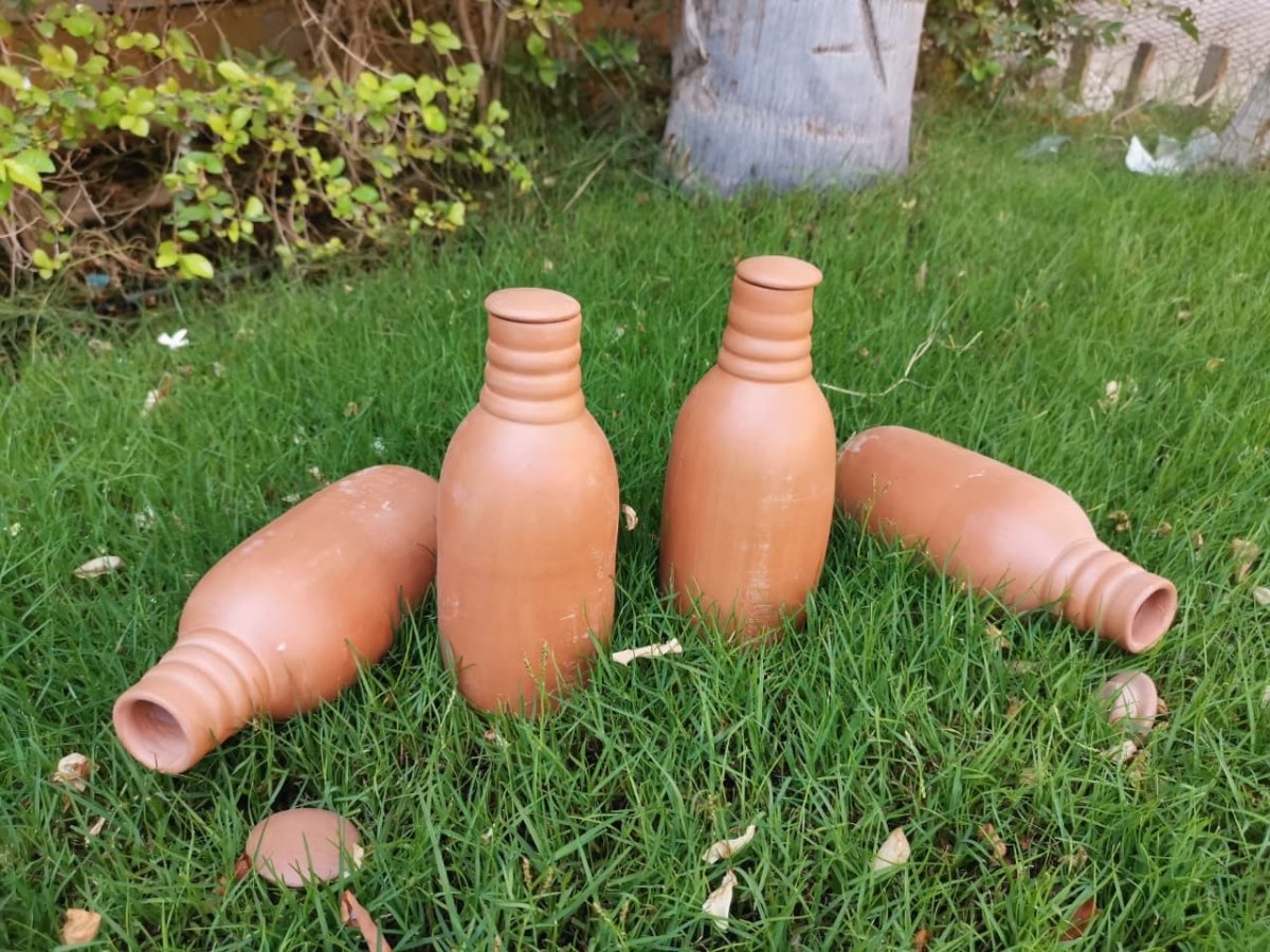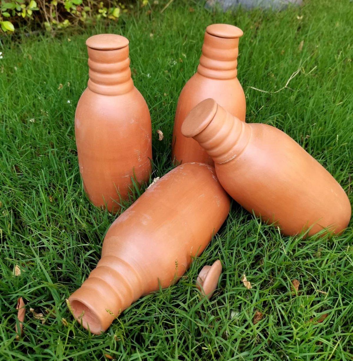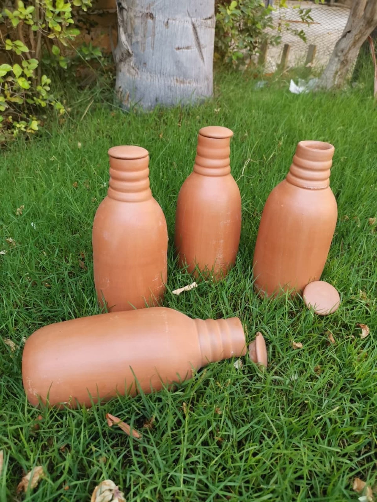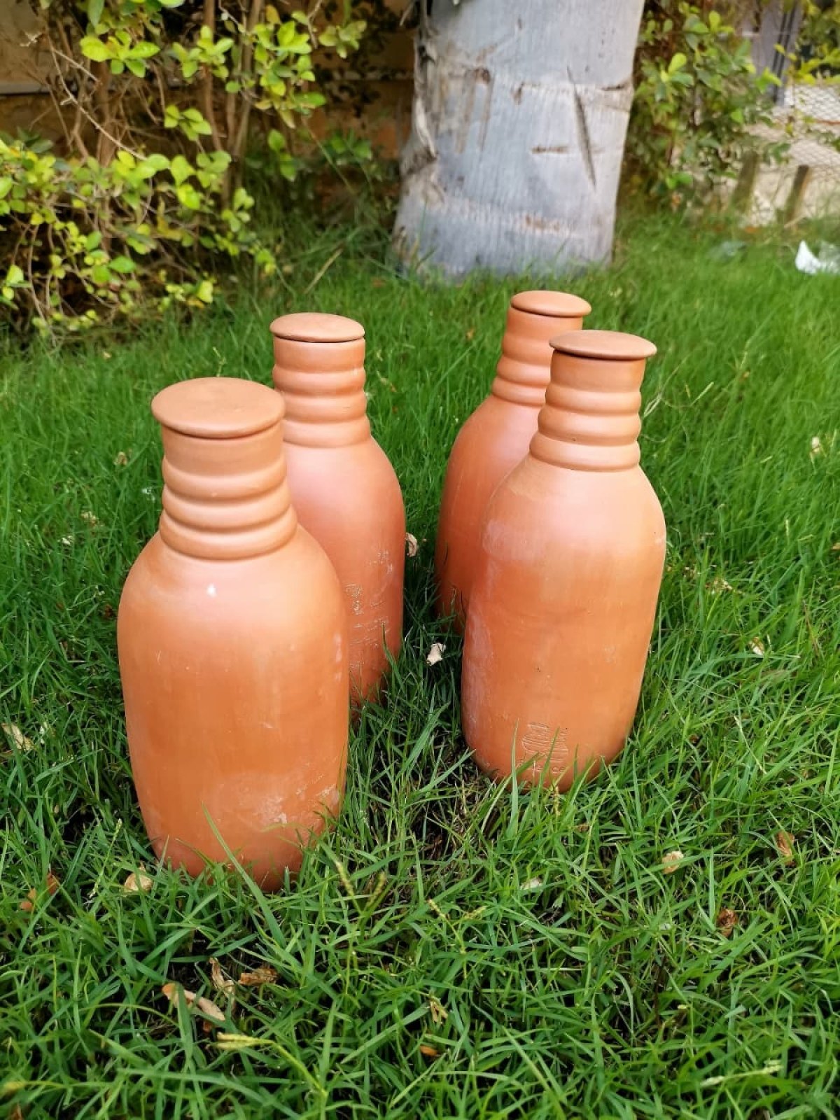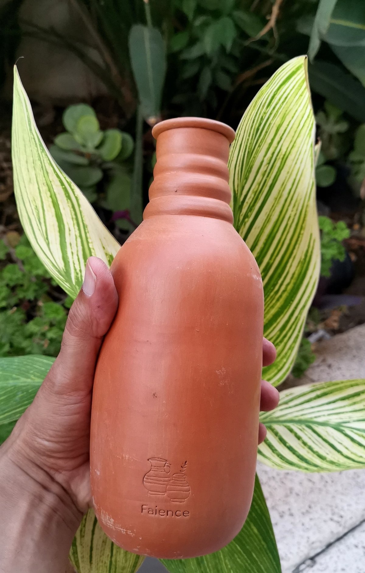 زجاجة مياه فخار سعة 750 مل تقريبا، صحية تساعد في موازنة درجة الحموضة في الجسم، مما قد يقلل من مشاكل المعدة وتحافظ على نقاء المياه ومقاومة للبكتيريا