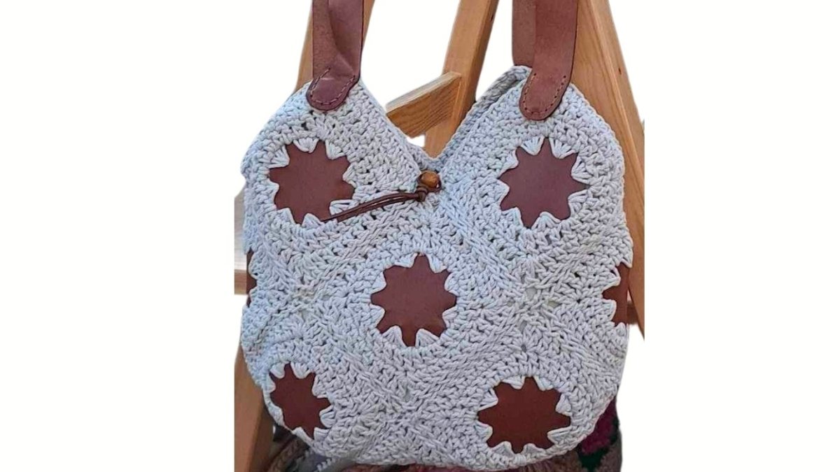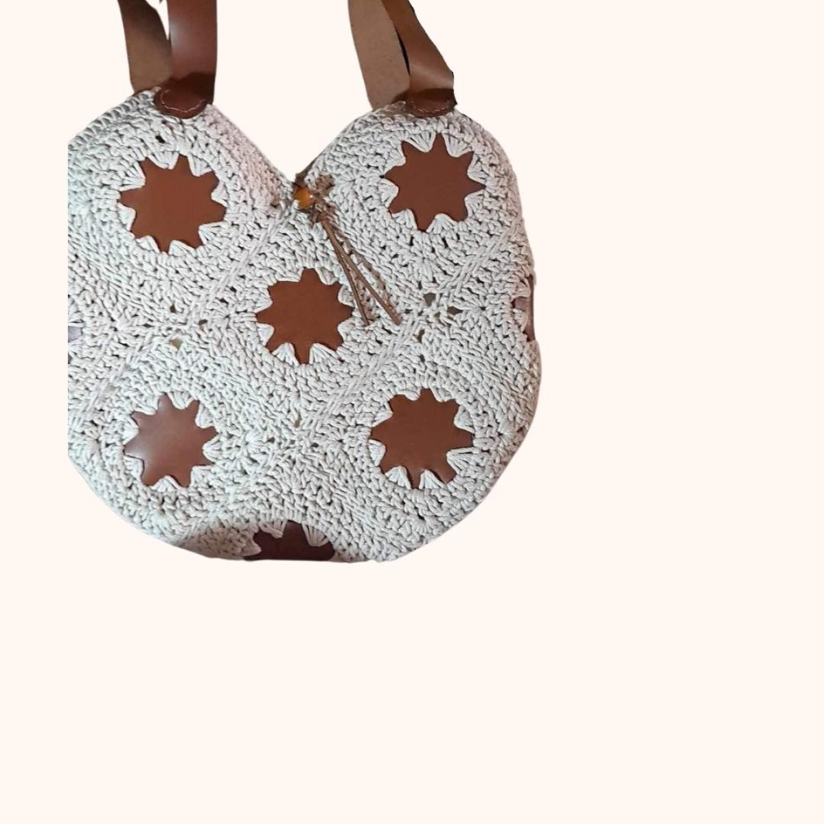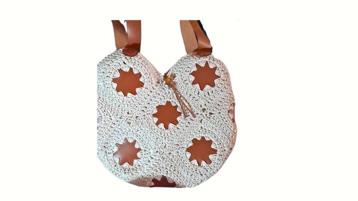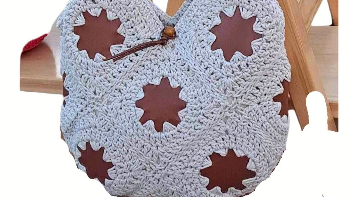 شنطه كروشيه صغيره مصنوعه من خيوط القطن الطبيعي سكري اللون