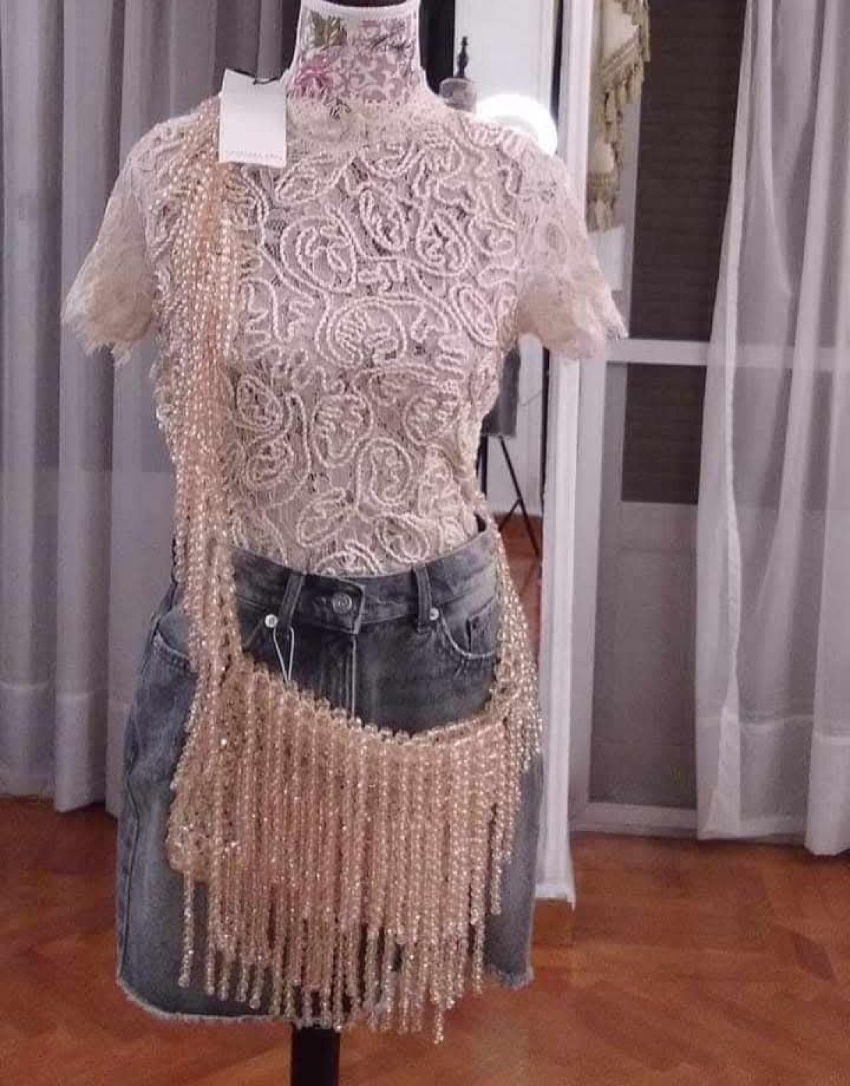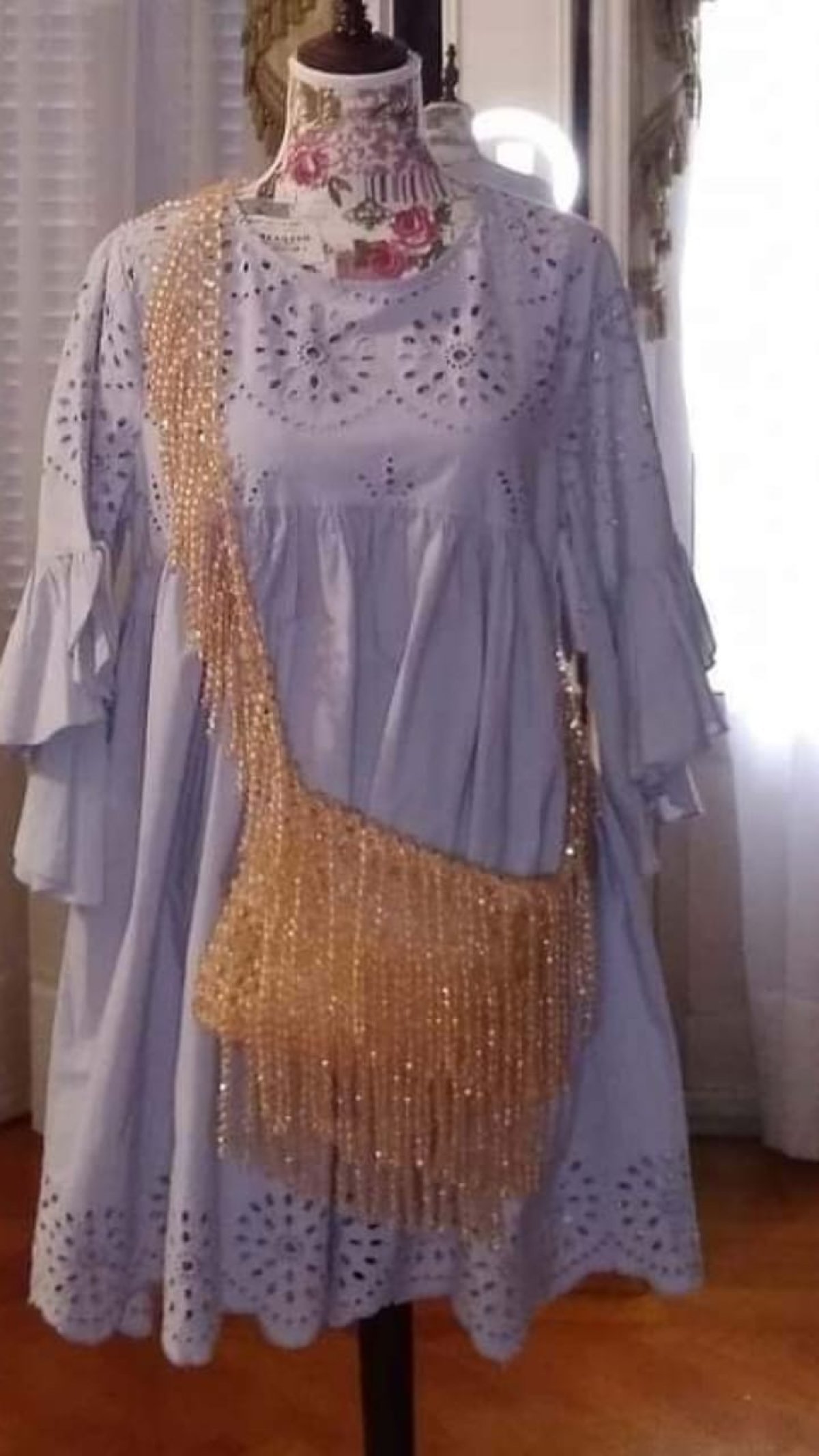 كريستال سيمون مدور بالشراشيب ايدكروس الطول 16 العرض 23 الشراشيب 3 ادوار والايد كلها شراشيب