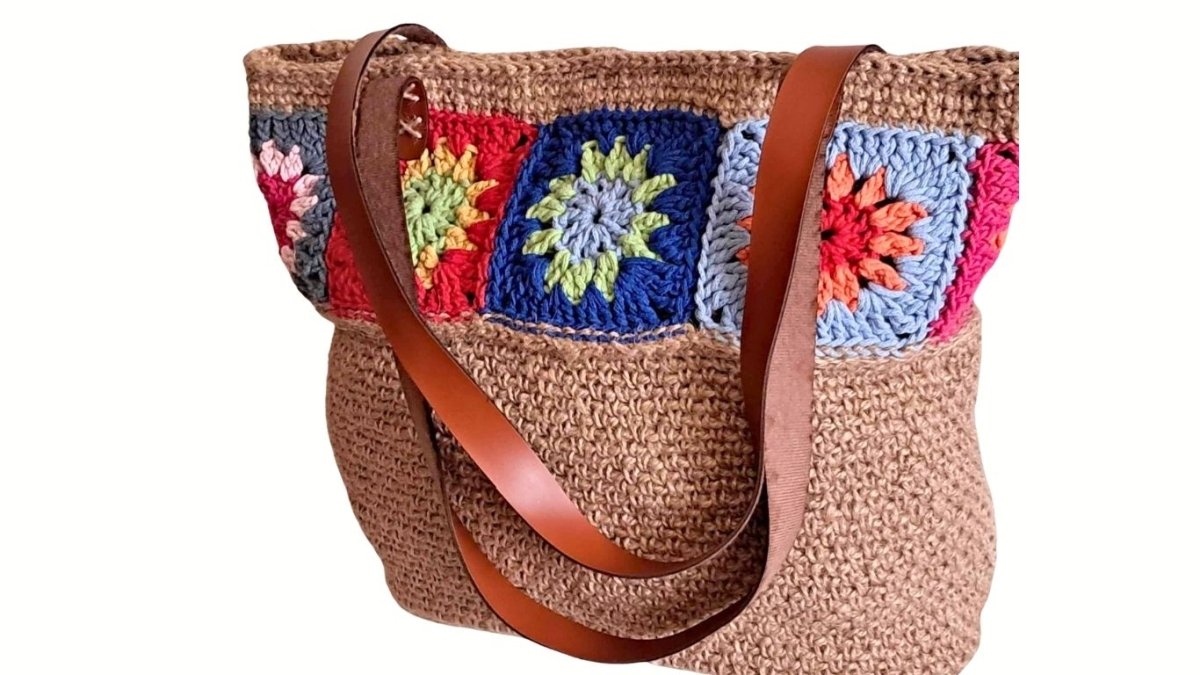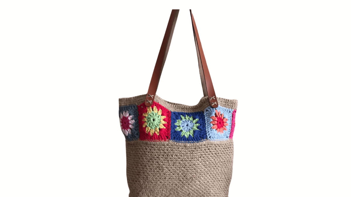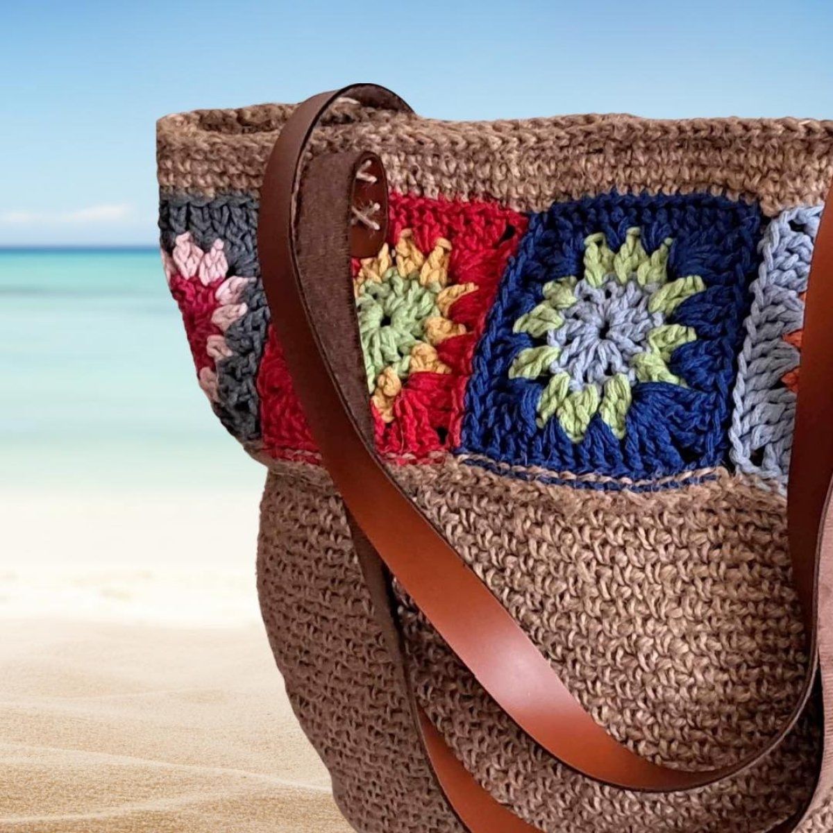 شنطه كروشيه يدوي مصنوعه من خيوط الخيش الطبيعي المعالج البيج الطبيعي