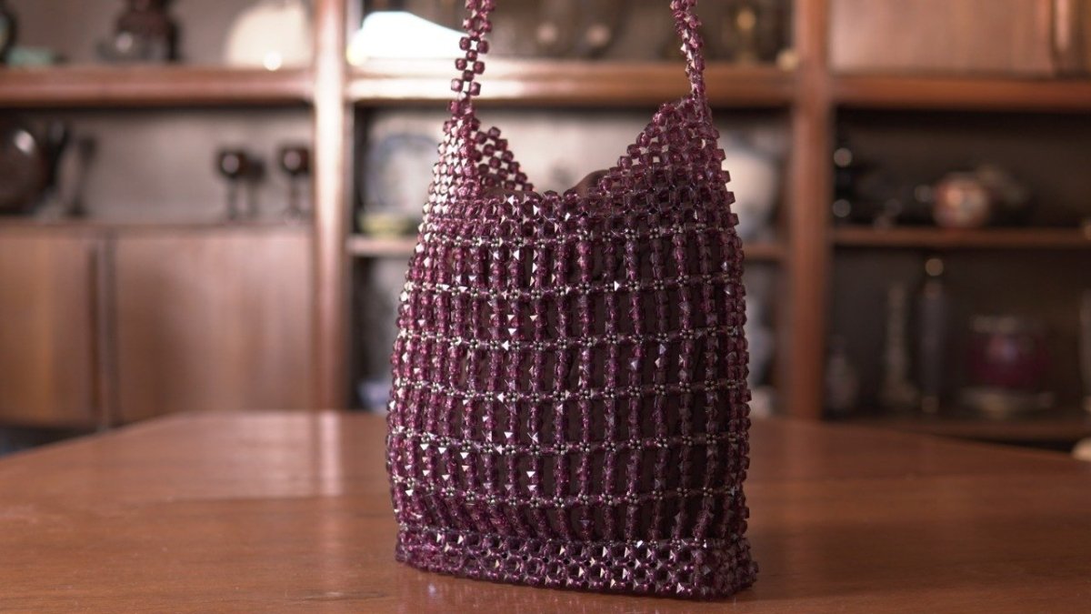 كريستال باذنجاني سوداسي في خرز فضي صغير الطول21 العرض23 الايد كروس