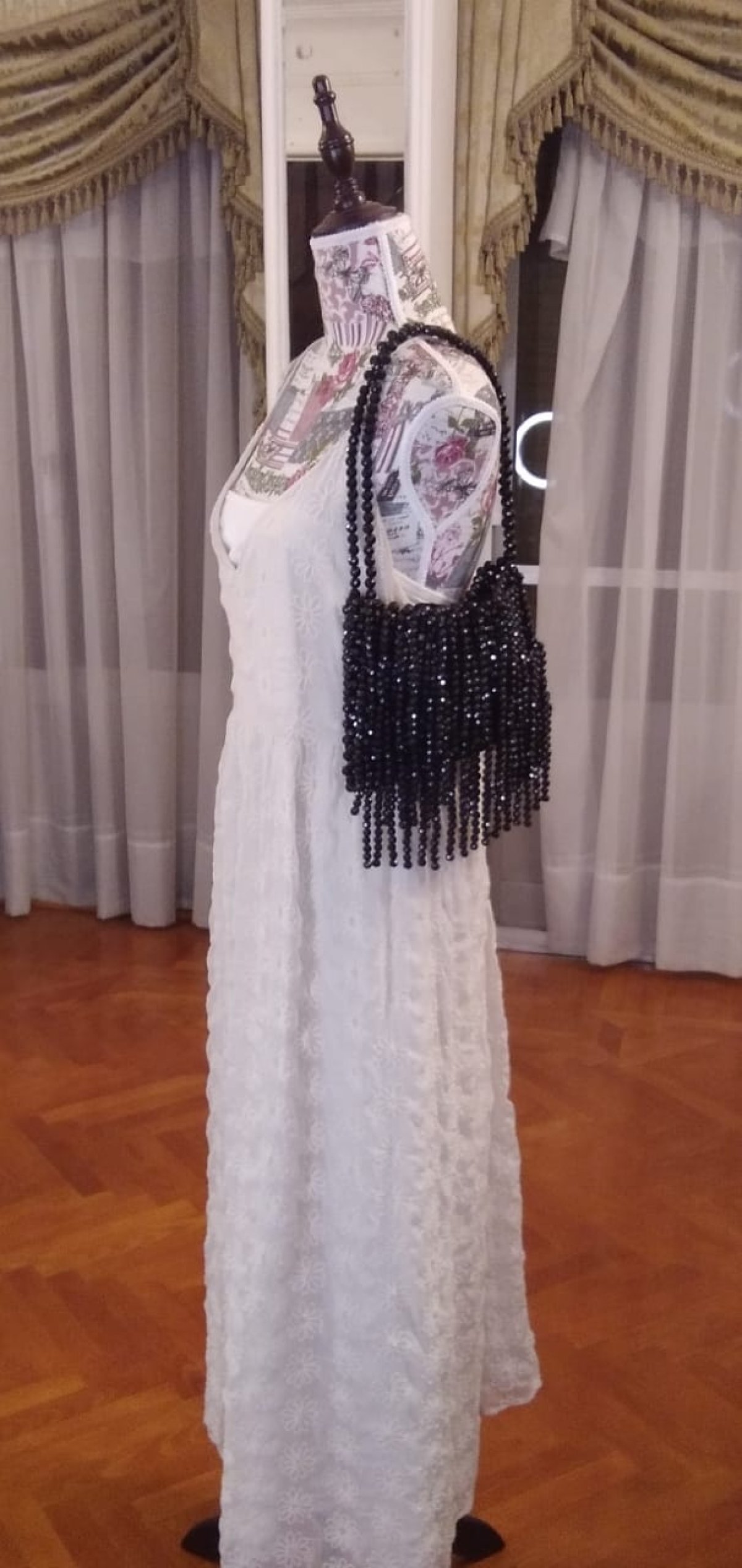 كريستال اسود مدور بالشراشيب الطول17 العرض23 الايد تحت الباط بدون شراشيب