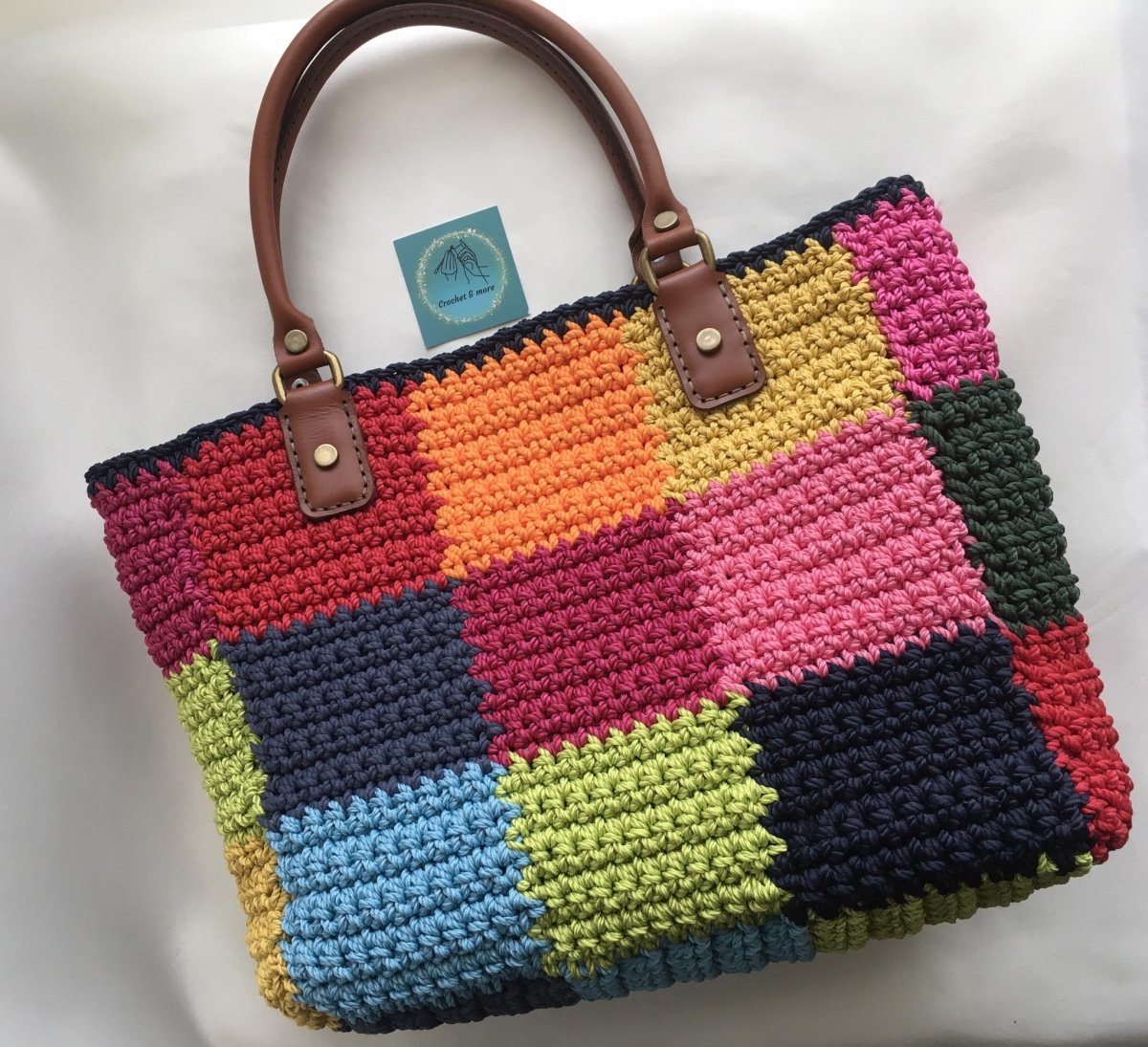 حقيبة يد كروشيه مصنوعة يدوياً من خيوط المكرامي متعددة الألوان. حمالات الشنطه من الجلد الطبيعي وحزام كروشيه كروس بادي. بطانة داخلية مزودة بجيب وسحاب. الأبعاد: 27 × 30 سم