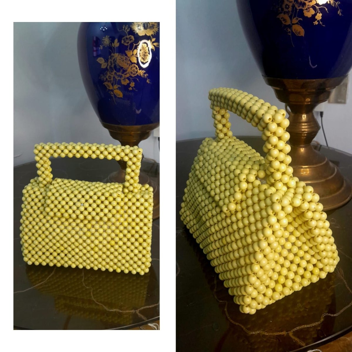 خرز اصفر مدور صغير باليد مربعه مجدوله الطول12 العرض18