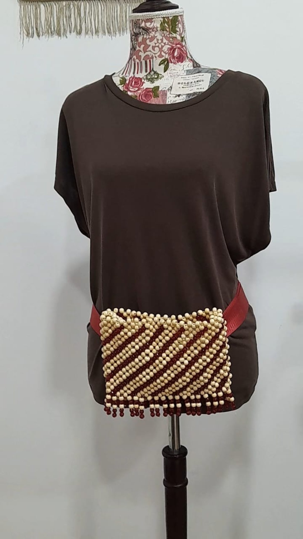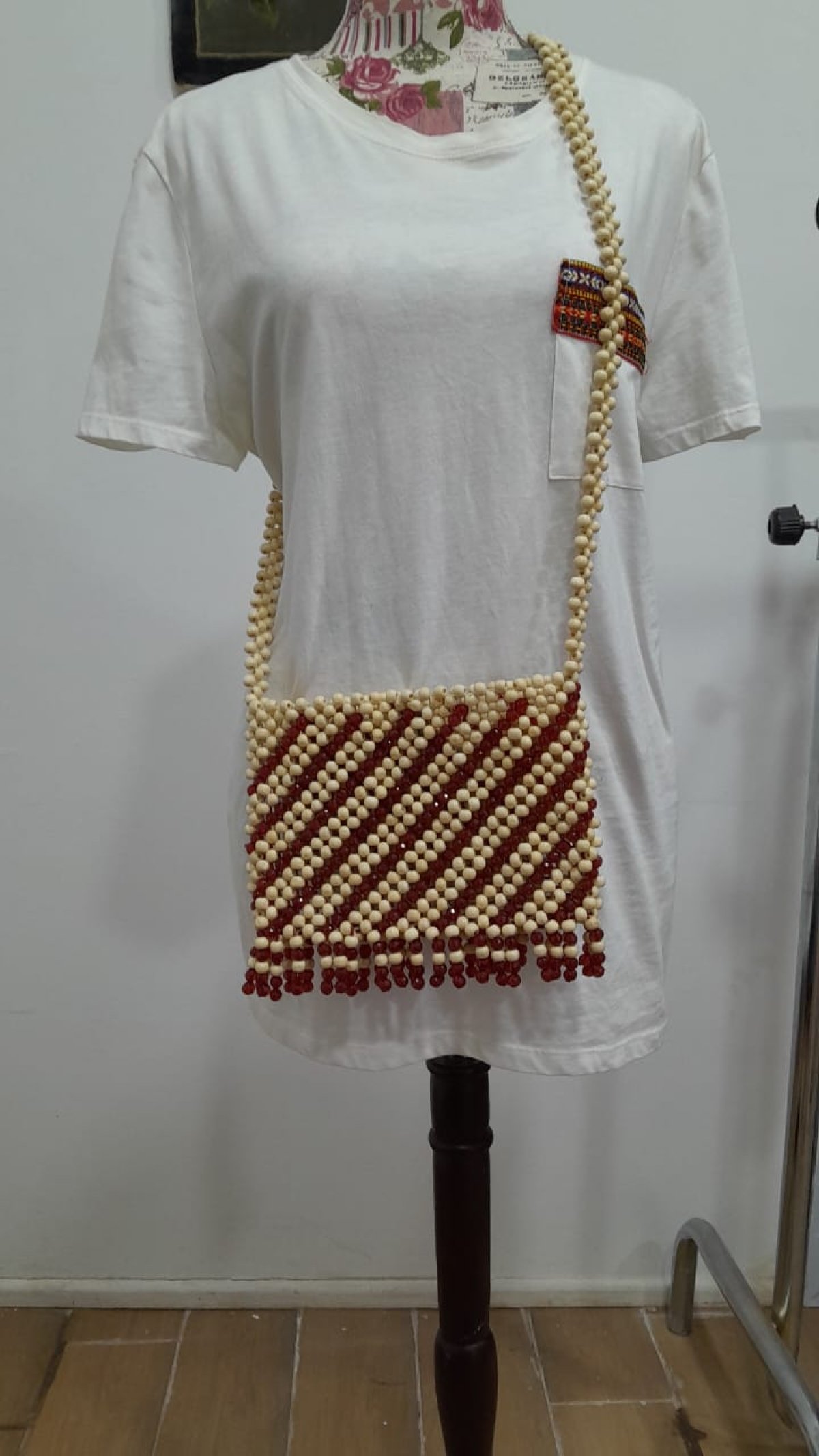 خشب اوف وايت في كريستال نبيتي بشراشيب صغيره علي الوسط بحزام ويد خرز كروس الطول15 العرض20