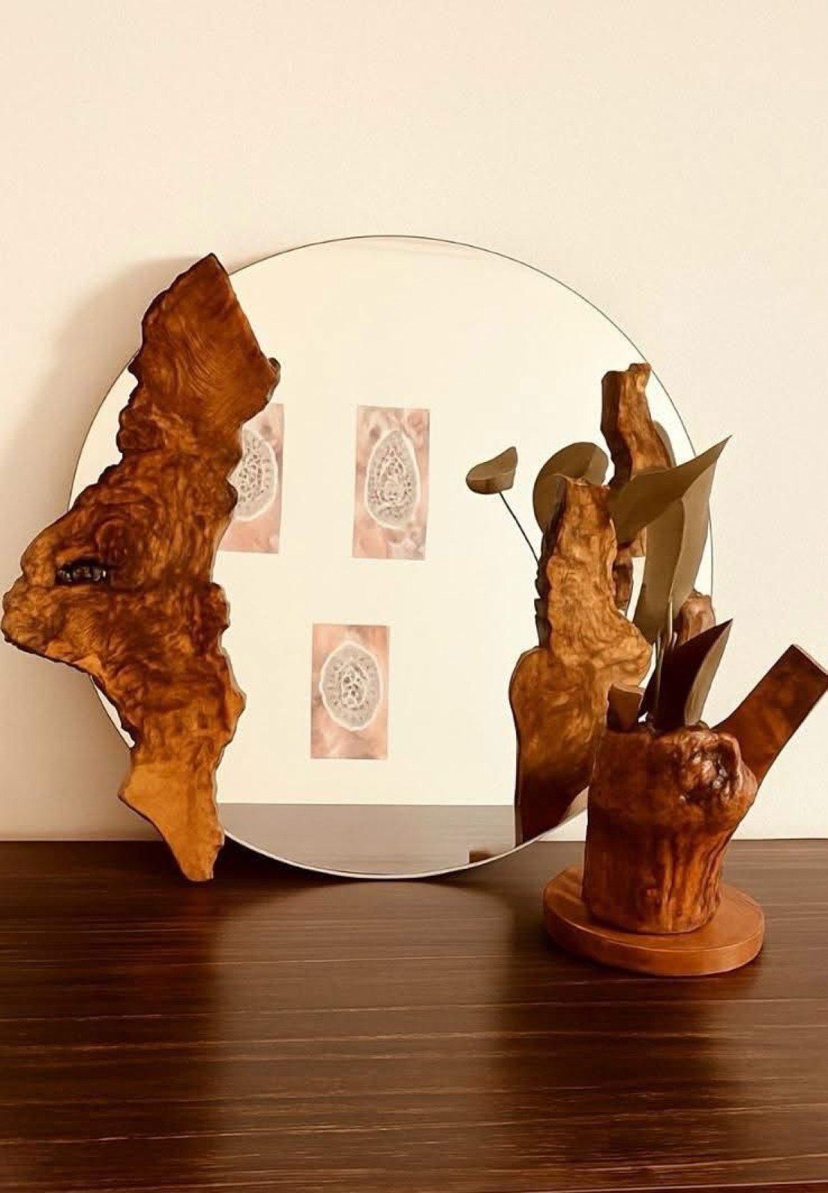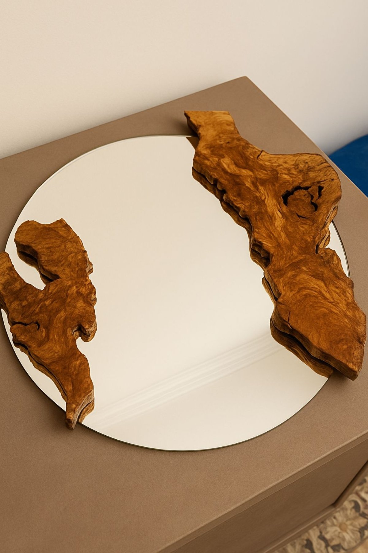 مرآة الزيتون فريدة بتصميم يدوي مستوحى من سحر شجرة الزيتون. انعكاسها مش بس بيظهر صورتك، لكن كمان بيضيف لمسة طبيعية من الهدوء والرقي لكل ركن في بيتك.” 50 سمم