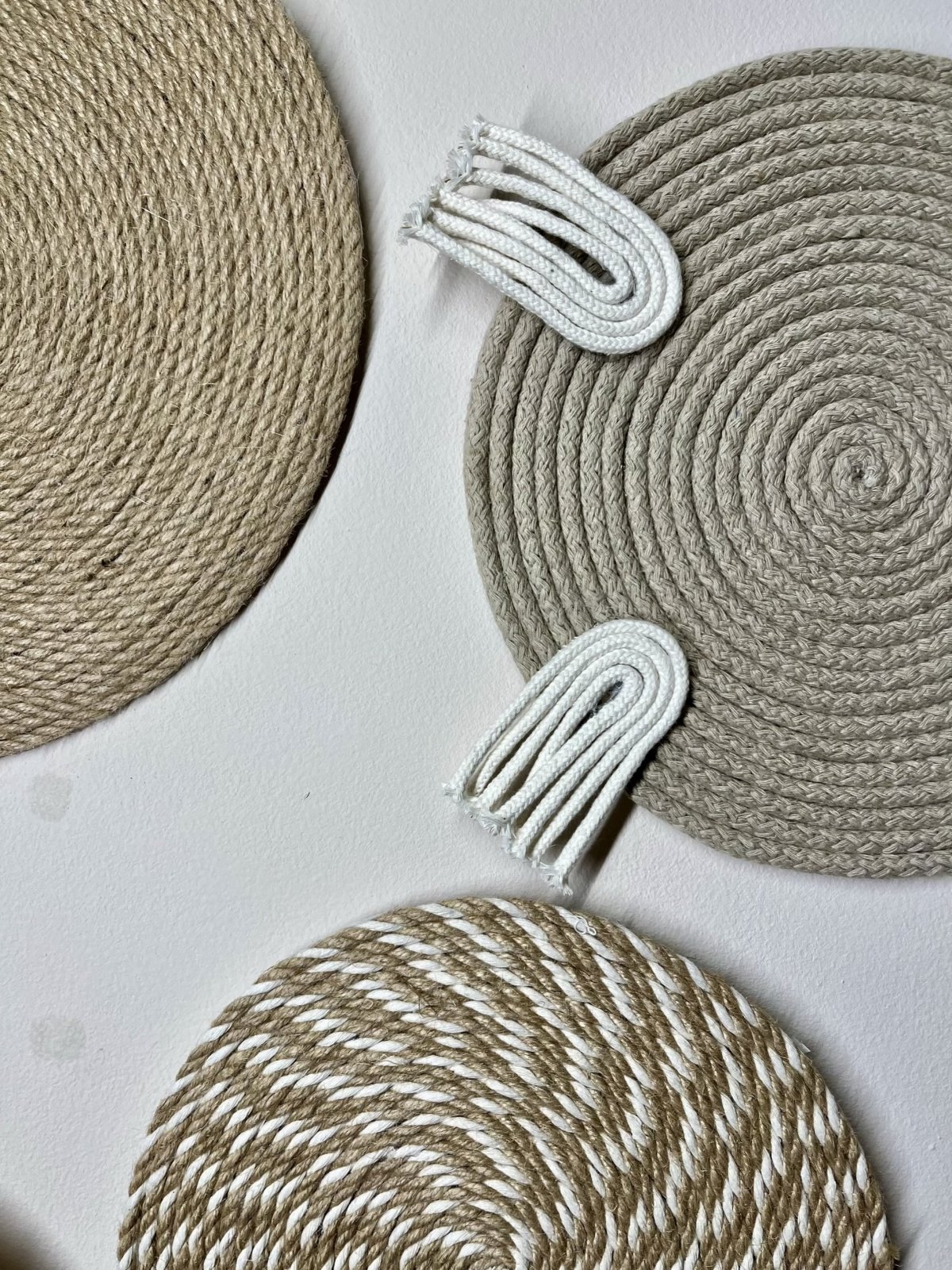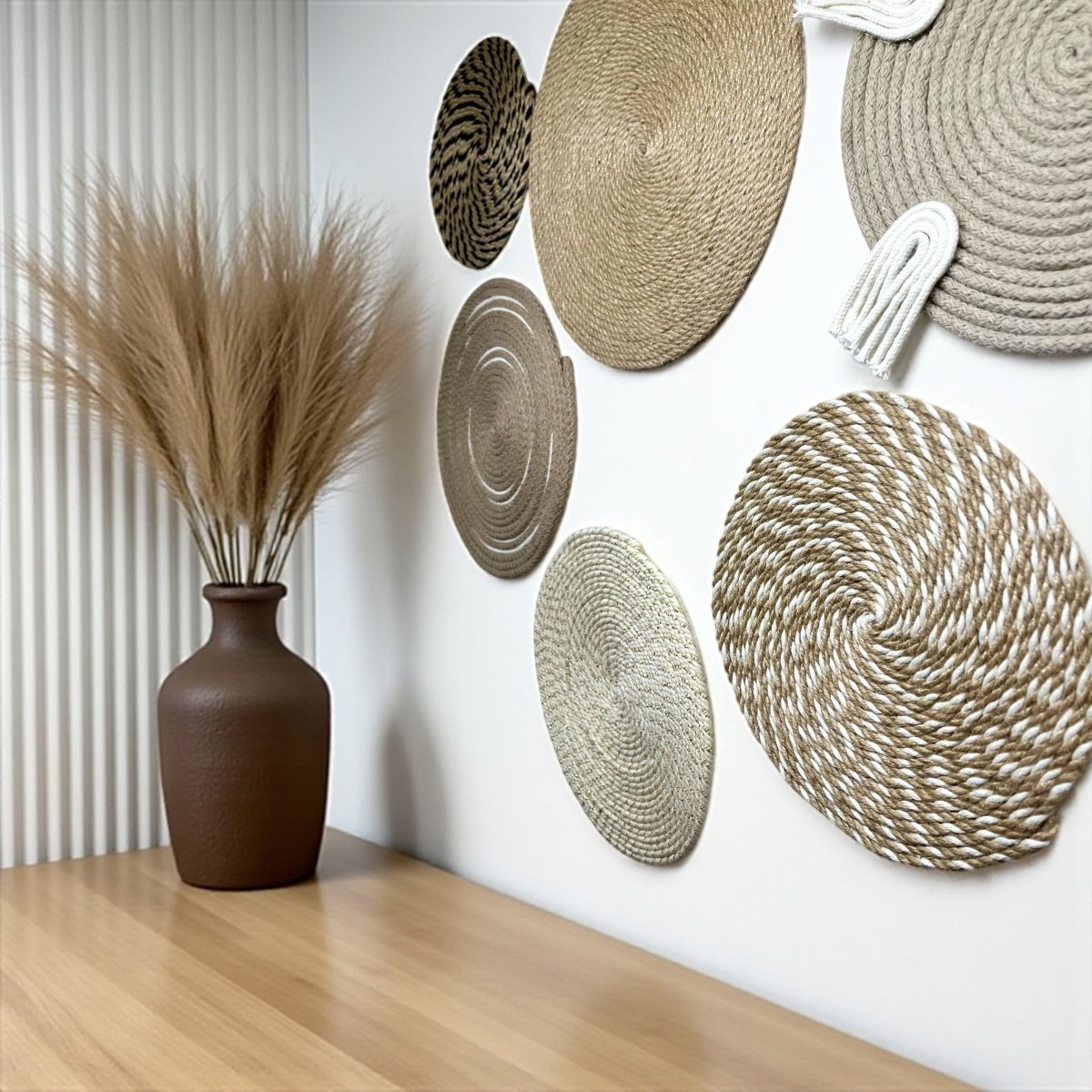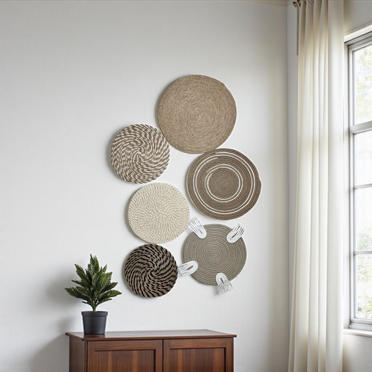 ديكور بوهو للحائط مكون من 6 قطع المقاسات : 32 – 29 – 25 – 25 – 24 – 21 سم متاح التعديل في الأشكال، الألوان والمقاسات حسب الطلب. وقت التنفيذ: من أسبوع إلى 10 أيام