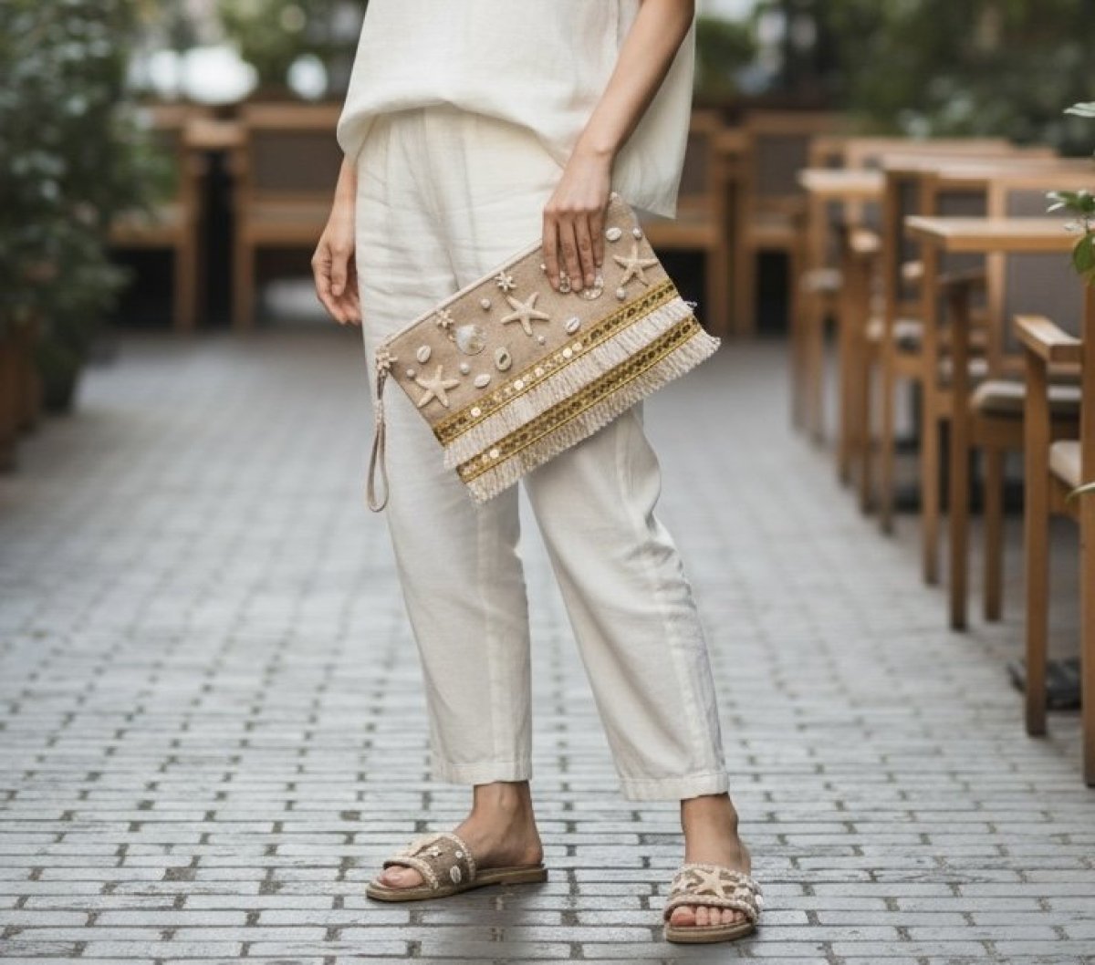 كلاتش صيفي بالأصداف ممكن تصمميه على ذوقك. وقت التنفيذ: من 7 إلى 10 أيام.