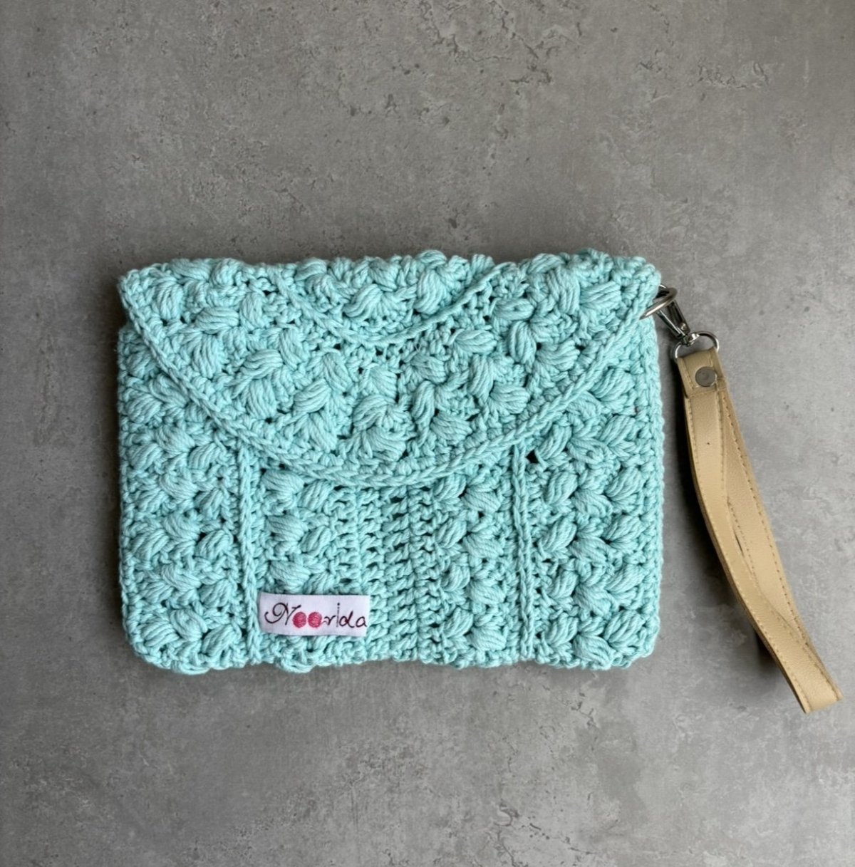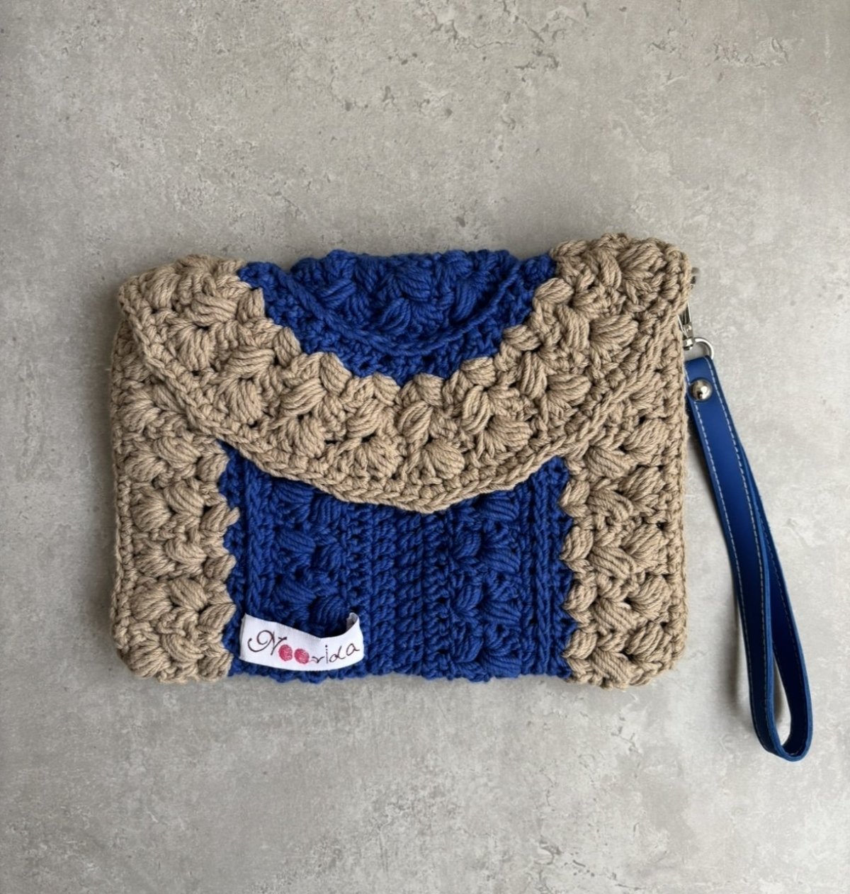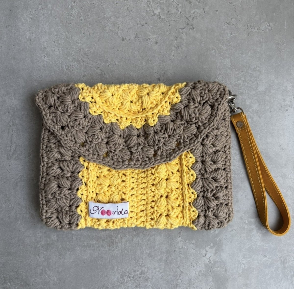 كلاتش مصنوع من خيط قطن مصري حجم مناسب للشاطئ والخروج اليومي متوفر بألوان اصفر في بيج ازرق في بيج بيستاج متوفر فوري
