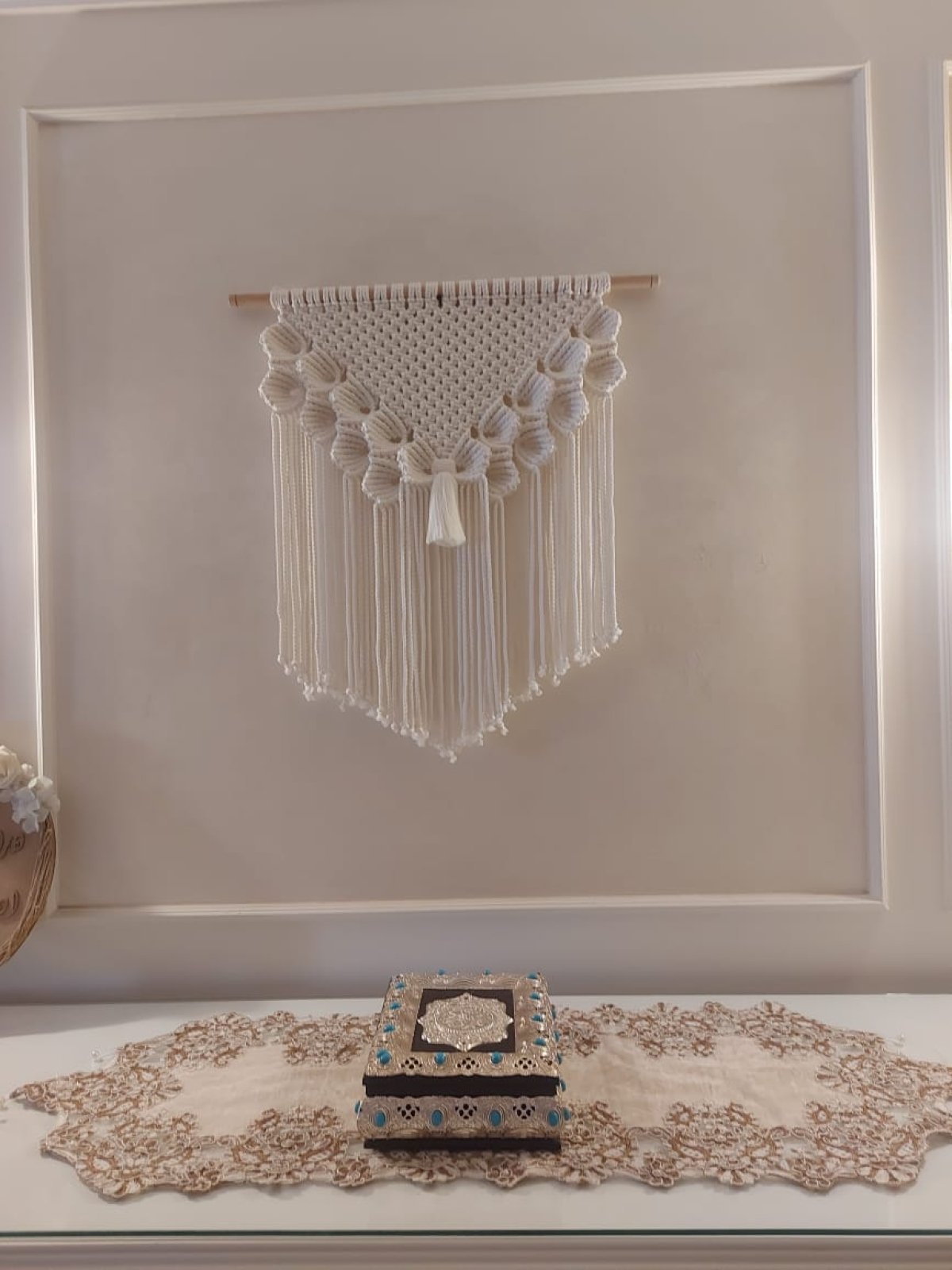 معلقة حائط بعقد ورده المكرمية الجميله لديكور اجمل واجمل