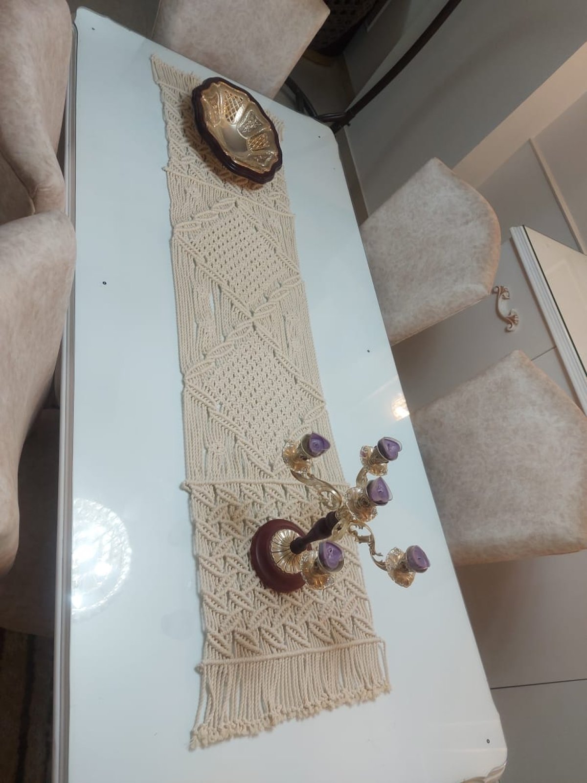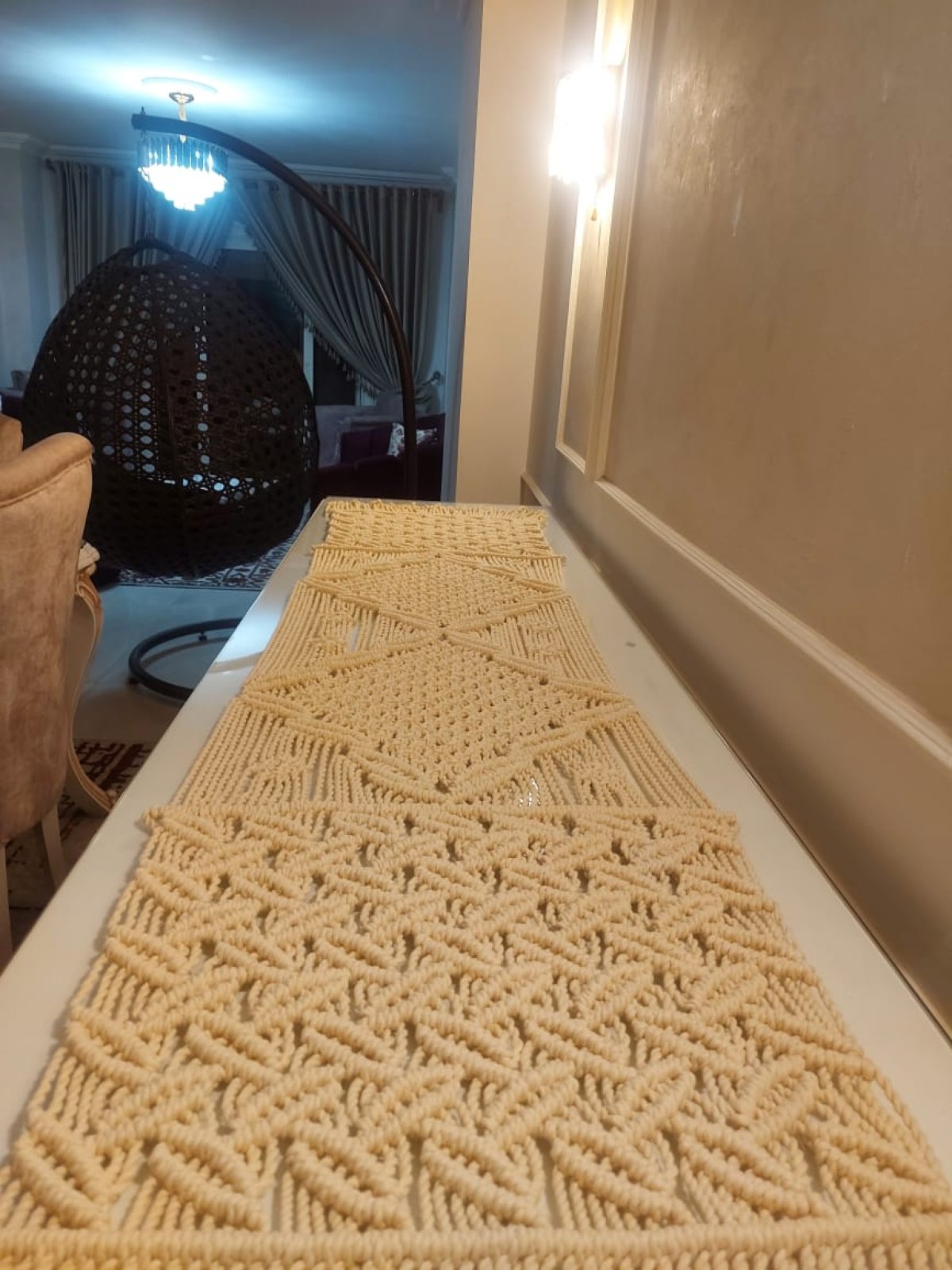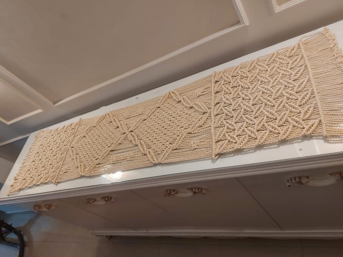 رانر سفره بعقد المكرمية بتنسيق ورق الشجر ييقدم شكل وديكور مختلف