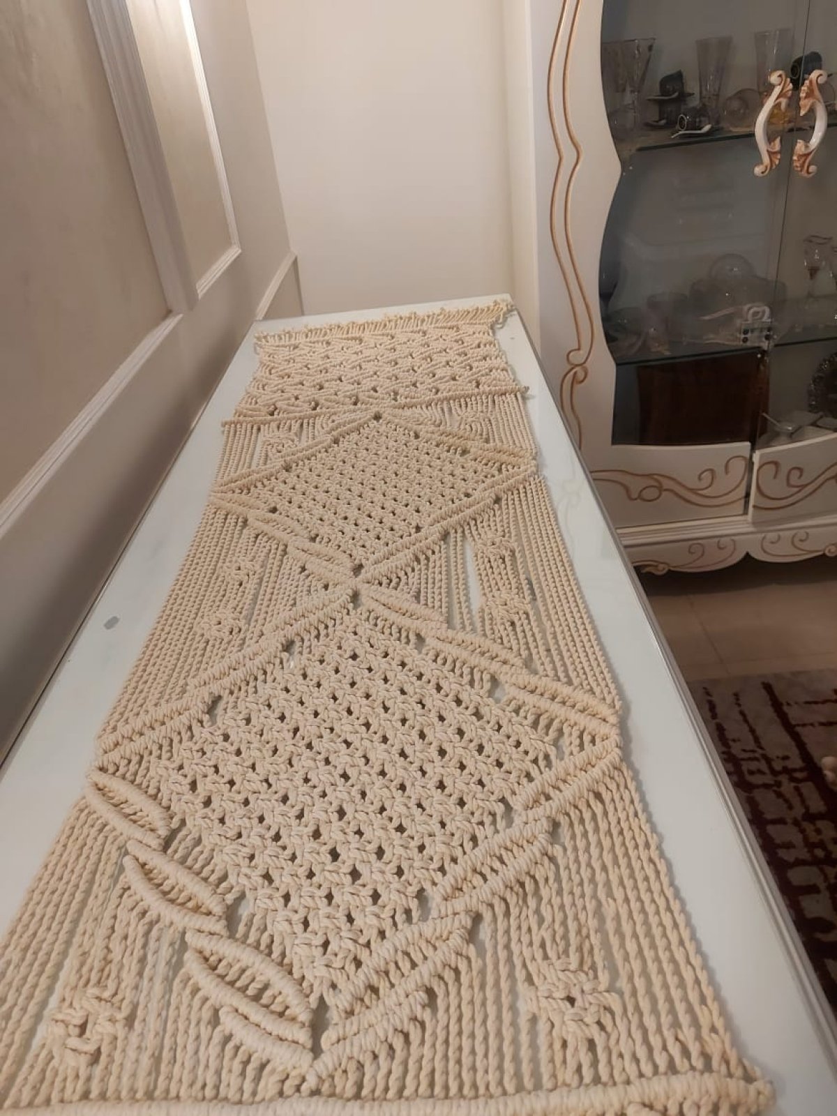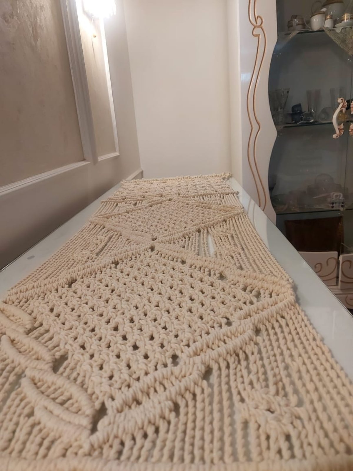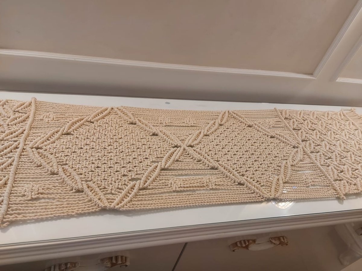 رانر سفره بعقد المكرمية بتنسيق ورق الشجر ييقدم شكل وديكور مختلف
