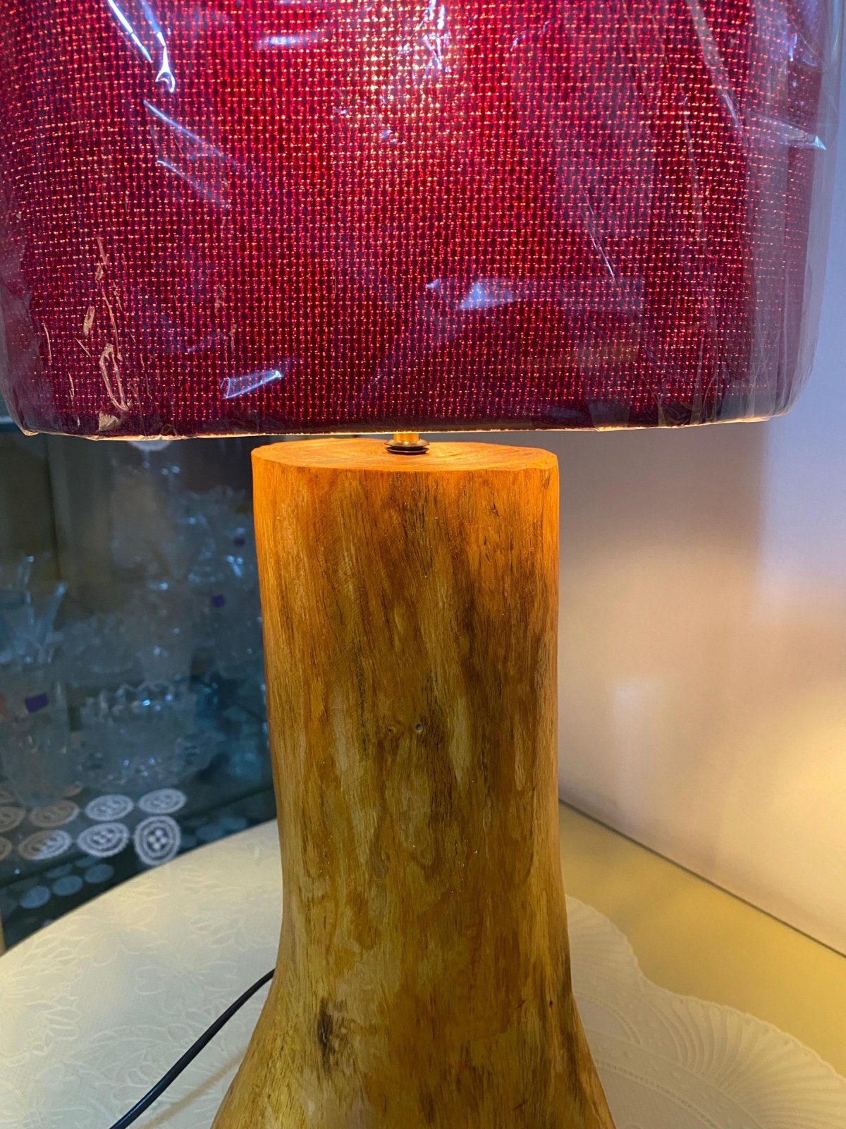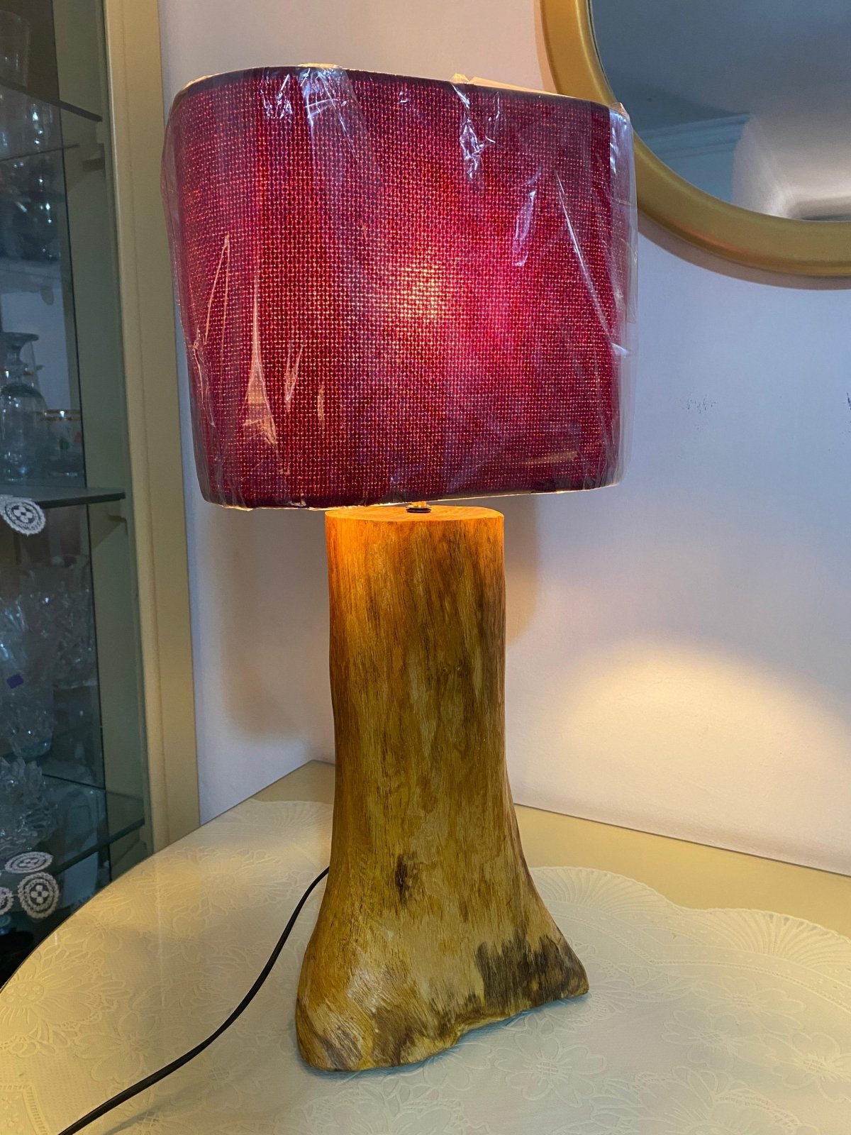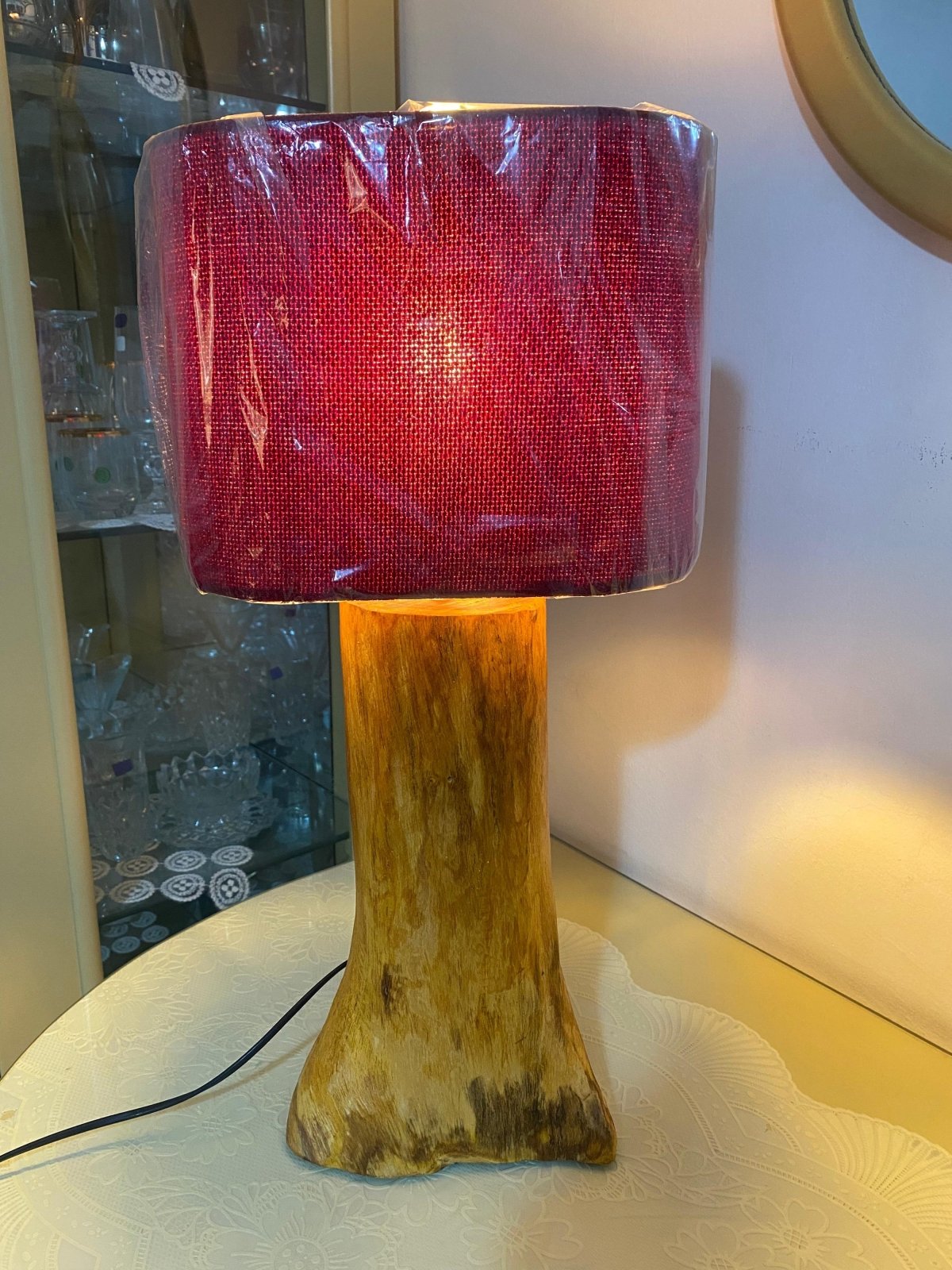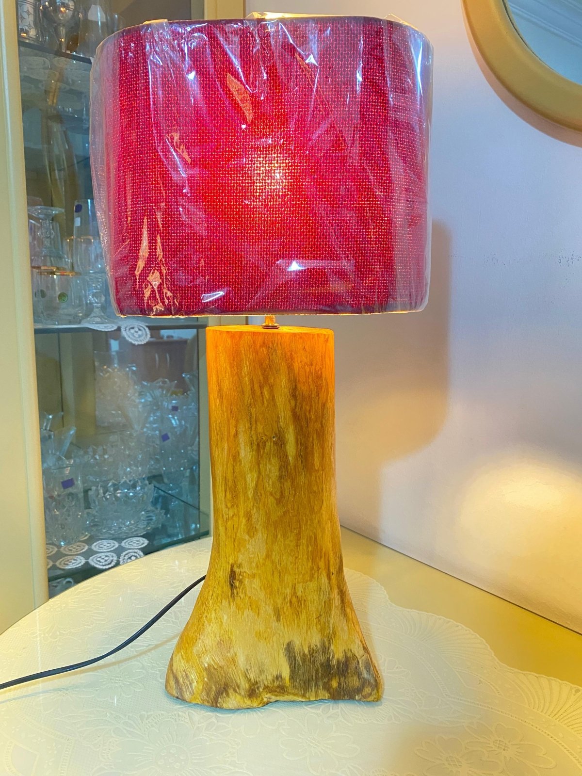 "قطعة ديكور فريدة تجمع بين جمال الطبيعة وسحر الألوان. ✨ أباجورة Rustic Ruby lamp بقاعدة خشبية طبيعية وشابوه بلون ياقوتي عميق، تضيف لمسة دفء وأناقة لأي ركن في منزلك. 🌹 اختيارك المثالي لعشاق الذوق الراقي واللمسات الطبيعية."