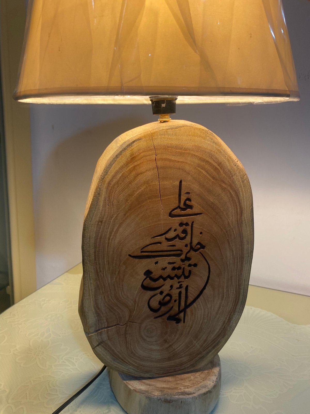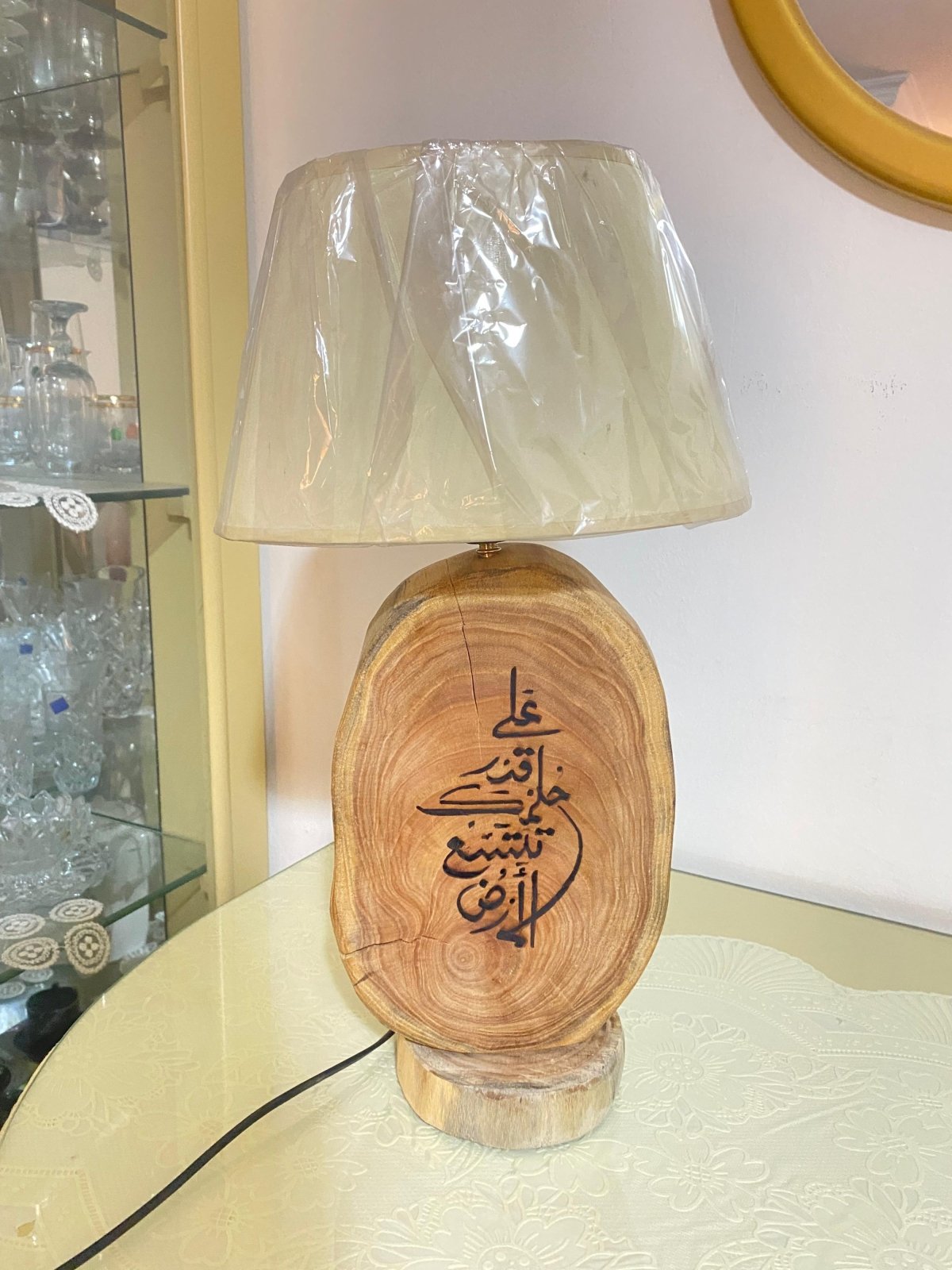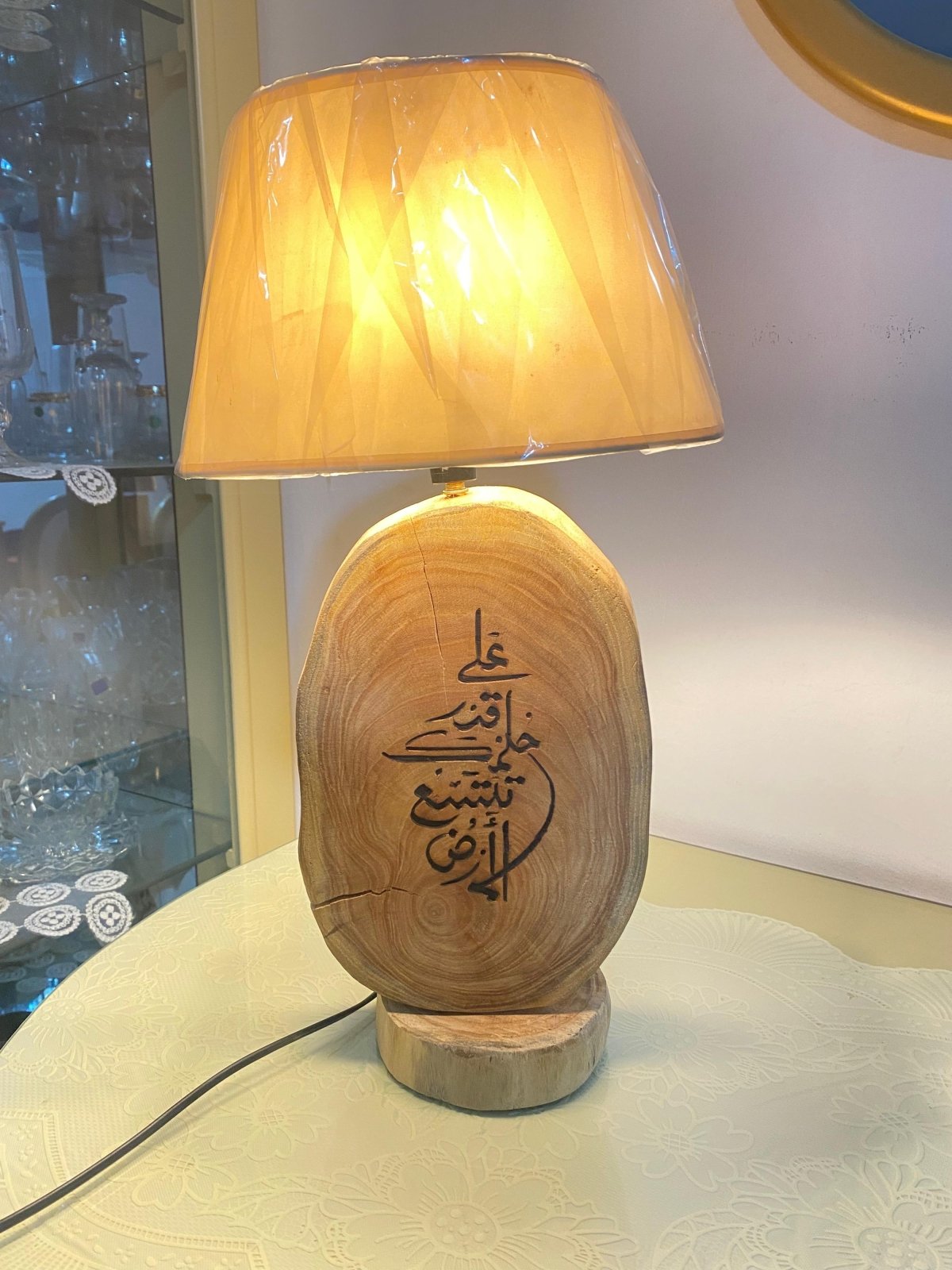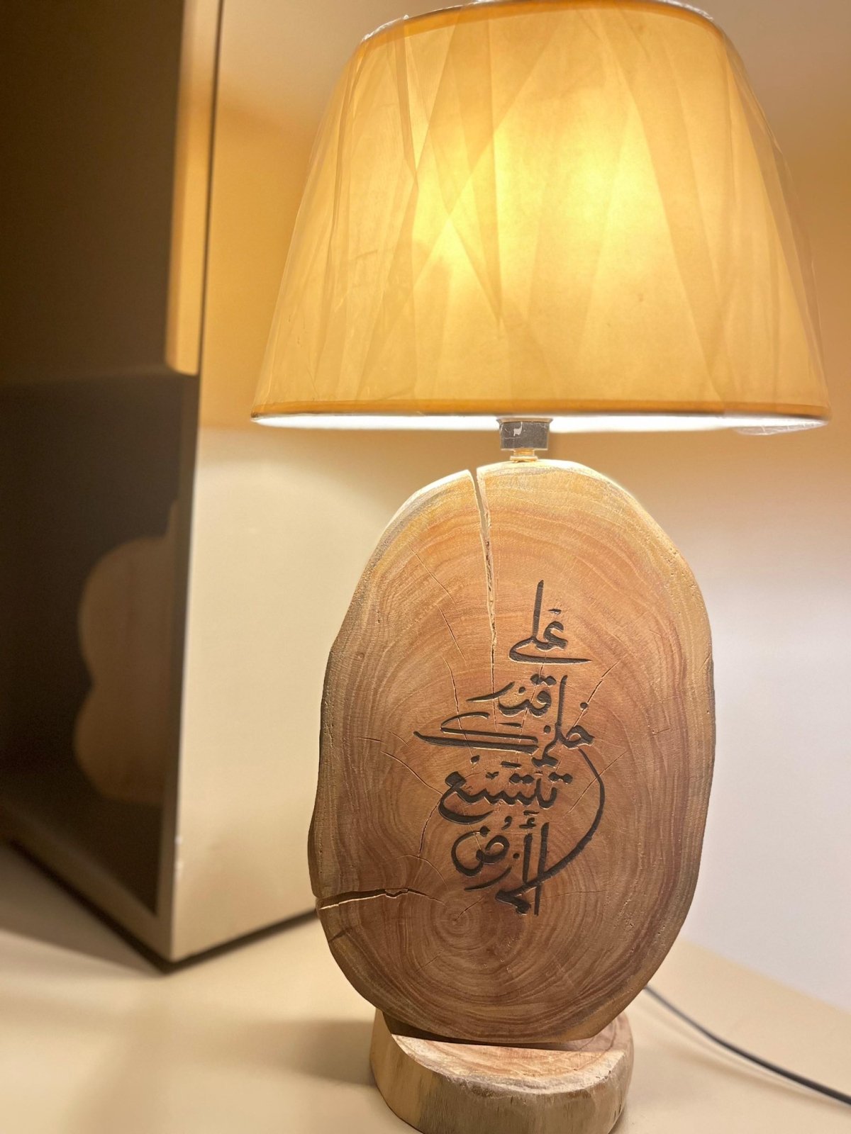 روح الخشب" ✨ أباجورة تجمع بين جمال الطبيعة وعمق الكلمة. مصنوعة من الخشب الطبيعي بكل تفاصيله الأصيلة، محفور عليها جملة عربية تبعث على السكينة والتأمل، لتضيء مكانك بلمسة دفء وروحانية. اختيارك المثالي لعشاق الذوق الرفيع ولمسة الخشب الحية. متاح اضافة اي جملة