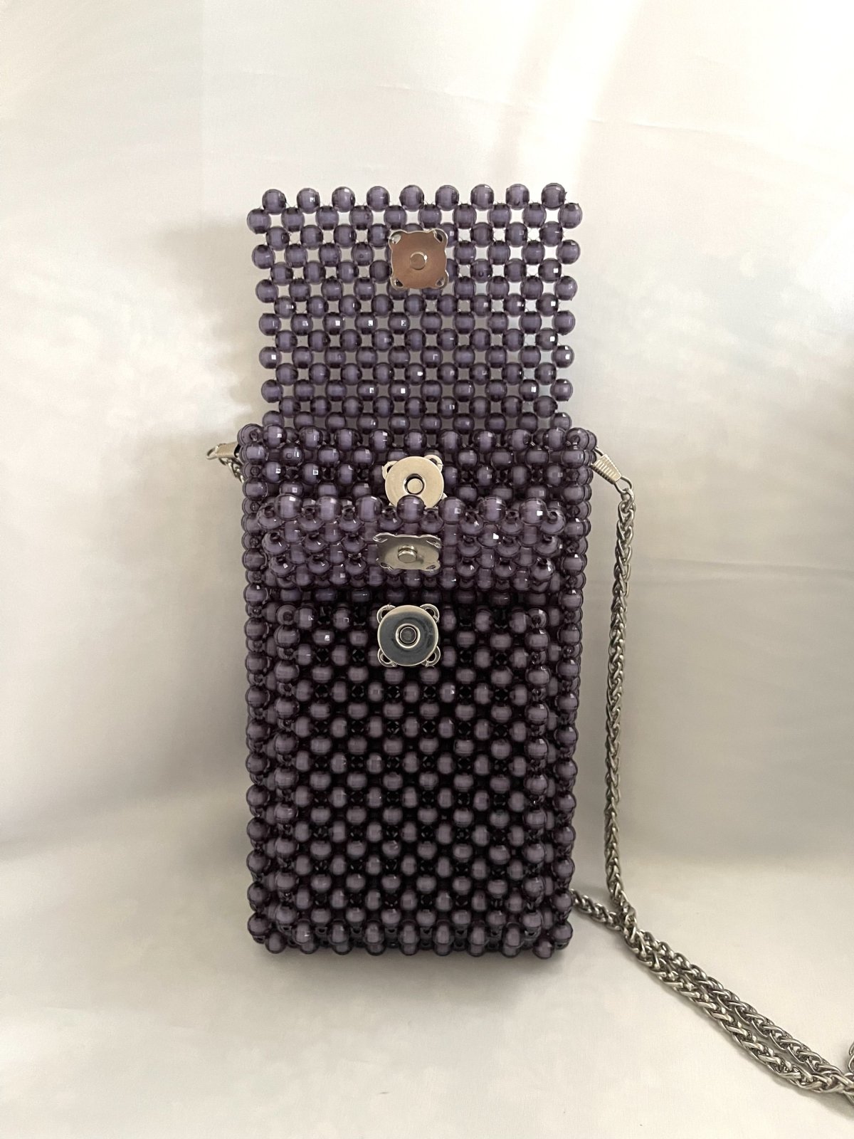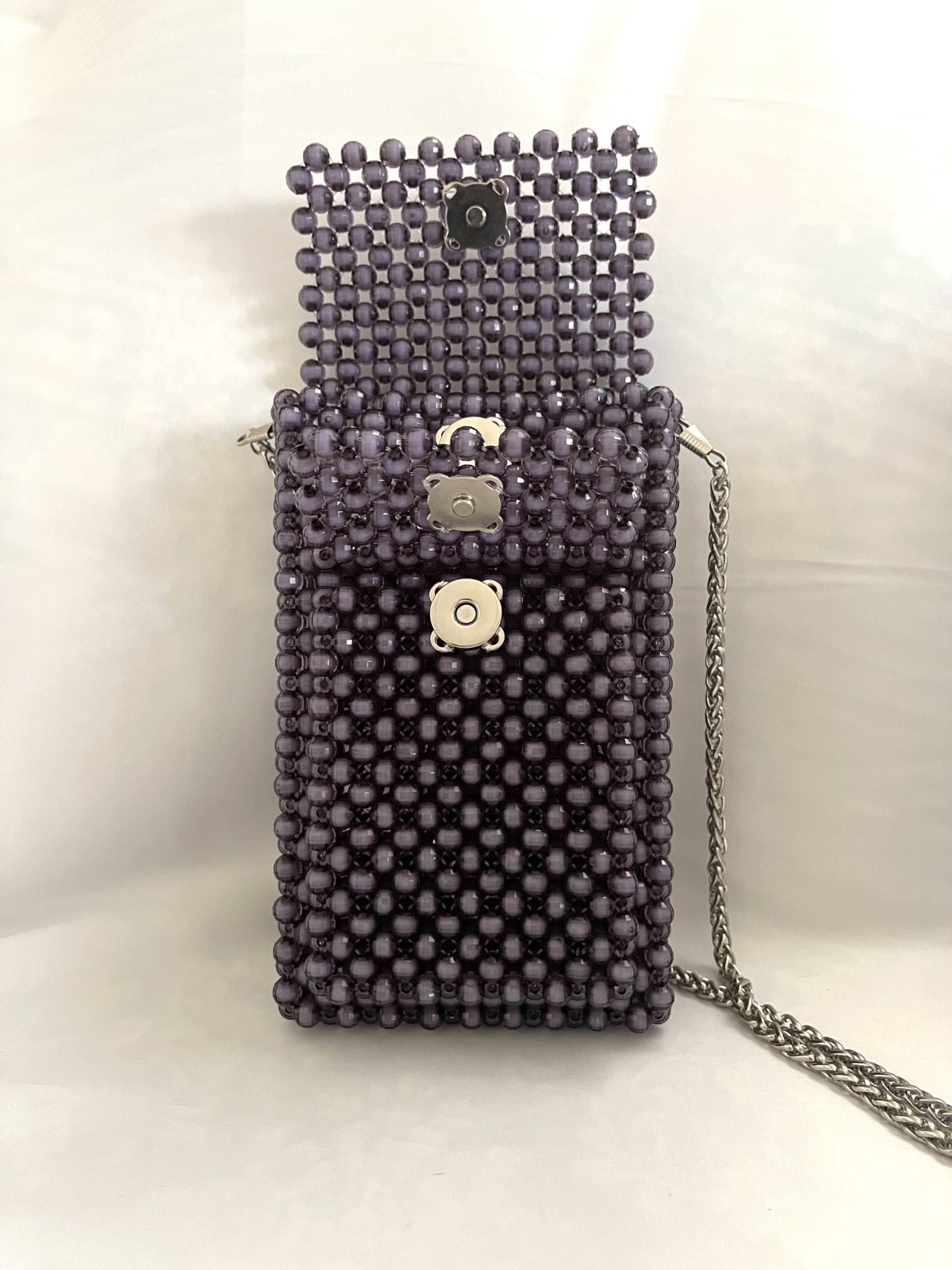 شنطة مصنوعة يدويًا من الكريستال المحقون ذو الجودة العالية جيب كبير يكفى موبايل و محفظة و جيب صغير للكروت مزودة ب ٢ مغناطيس ل الغلق الجيوب و حزام معدنى بمشبك الطول ١٩سم والعرض١١سم و العمق٥ سم