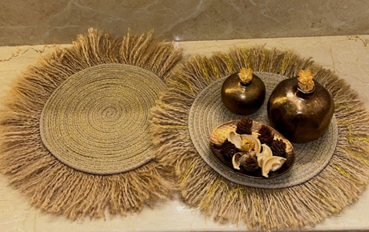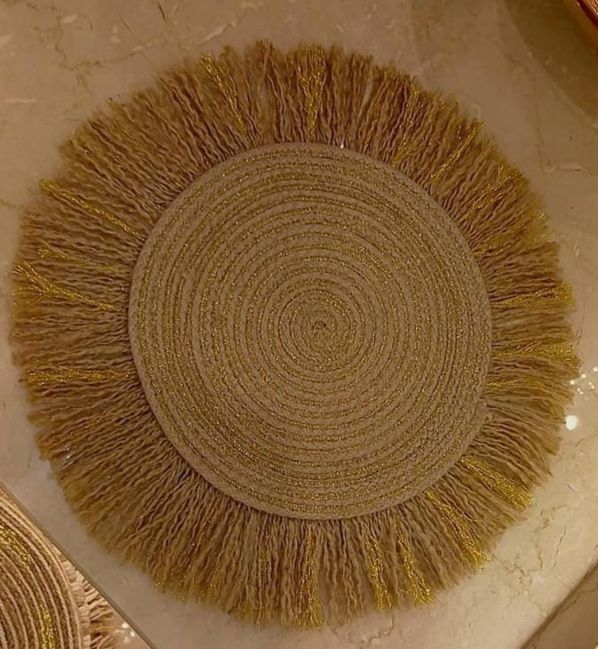 كوستر طبق قطر ٤٠سم خامه المكرميه مع التطعيم سيرما واطار من خامه الخيش متاح تنفيذ الاوردر بمقاسات خاصه متاح تغيير اللون حسب رغبه العميل