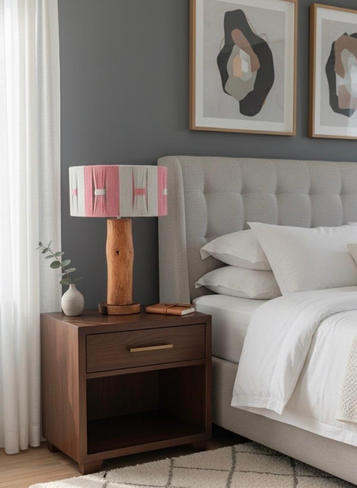 "أباجورة Threaded Light قطعة فنية تجمع بين جمال الخشب الطبيعي وسحر الشابوه المصنوع من الخيوط. ✨ بتدي إحساس دافئ ومريح في أي ركن من البيت، وكمان متاحة بألوان مختلفة حسب اختيارك. اختيارك المثالي لو عايز لمسة تجمع بين الأصالة والذوق العصري."