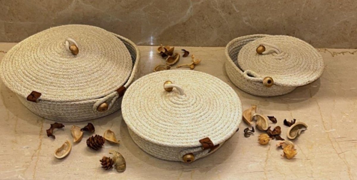 ممكن أساعدك بوصفه بشكل جذاب 👇 طبق مكرمية بالغطاء قطعة يدوية أنيقة من خيوط المكرمية المشغولة بعناية، مع غطاء متناسق يحافظ على محتويات الطبق ويضيف لمسة فنية راقية. القطر 15سم. ومتاح تغيير حجم الطبق حسب الطلب مناسب لتقديم الحلويات أو التمر أو للاستخدام كعنصر ديكوري مميز في المنزل. يمكن تنفيذ الطبق بألوان وأحجام مختلفة حسب رغبة العميل، ليضفي جمالاً ودفئاً على أي ركن من أركان البيت.