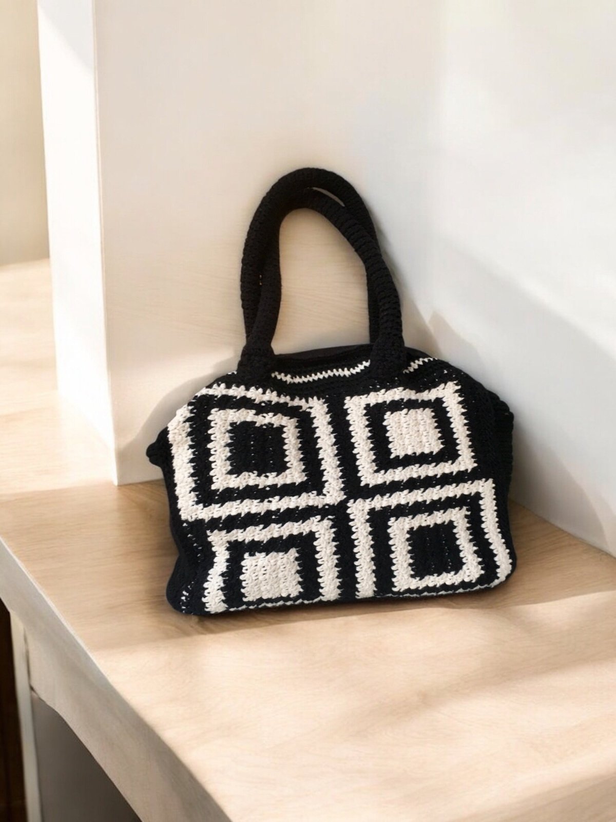 حقيبه كروشيه يدوي و اللون اسود في سكري ,