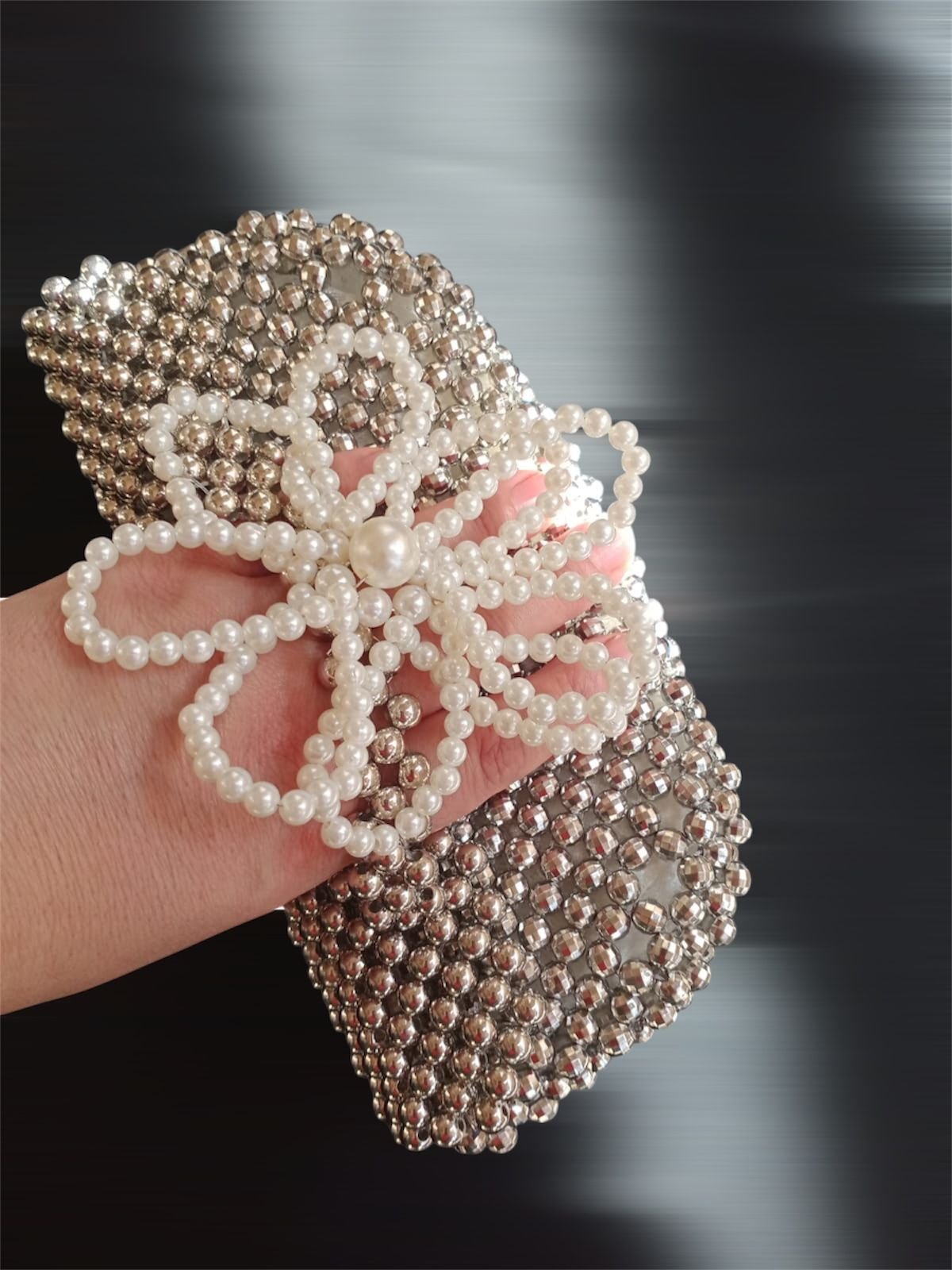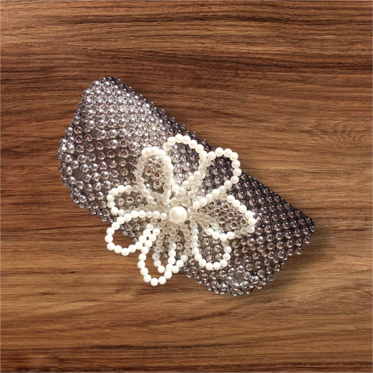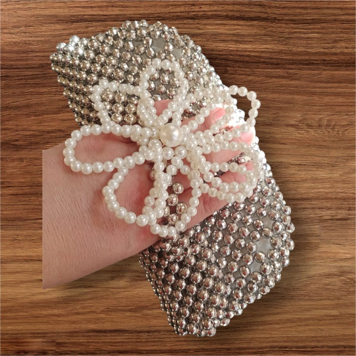 كلاتش من خرز ال سccb المستورد مزين بورده علي اليد وله بطانه داخليه مقاس واسع مقاس ٢٢ /13متاح جميع الالوان