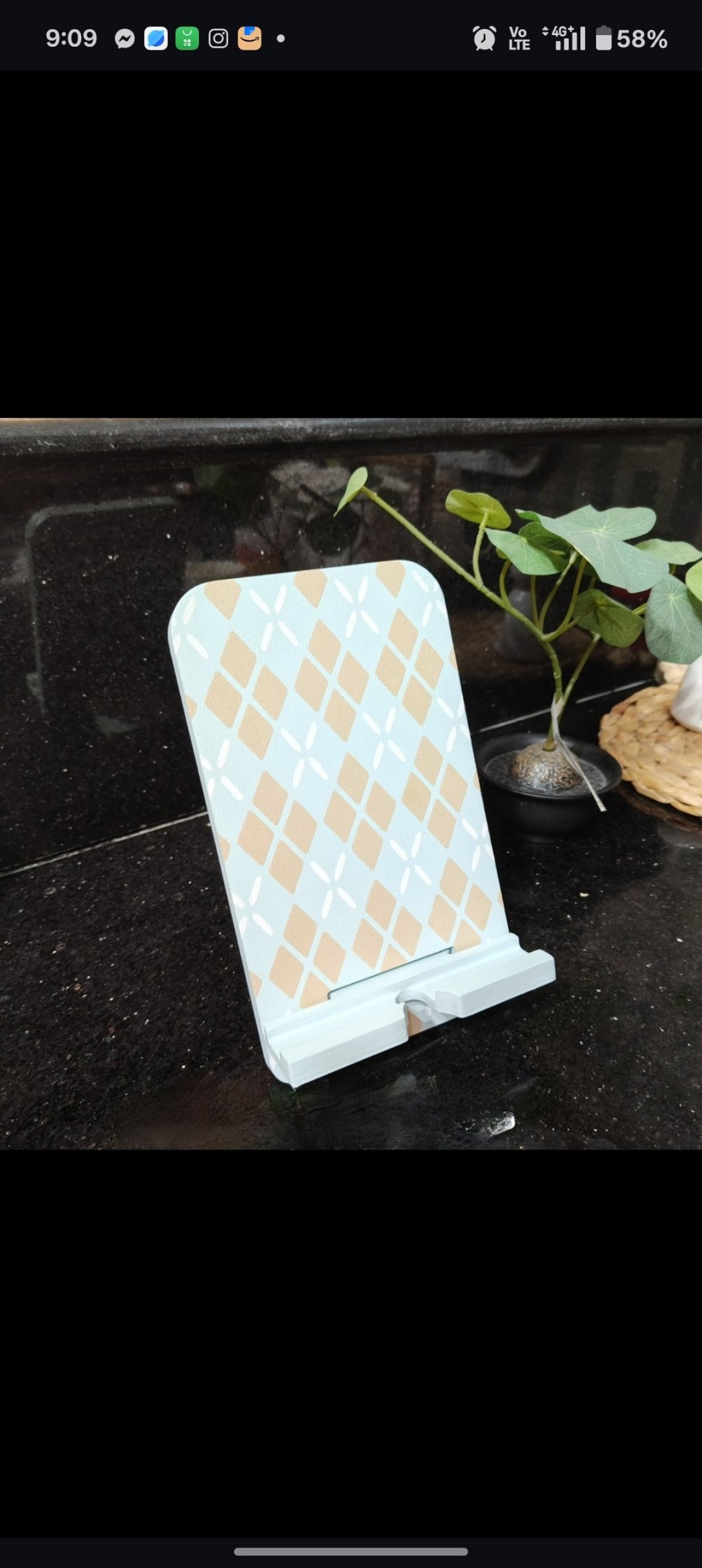 حامل موبايل خشب بلون لبني مع خلفية عصرية بطابع جذاب. جميع الخامات المستخدمه خامات عالية الجودة.