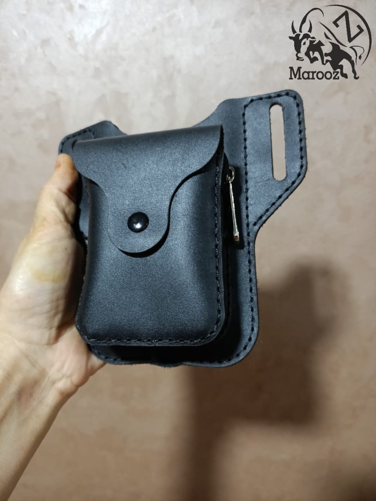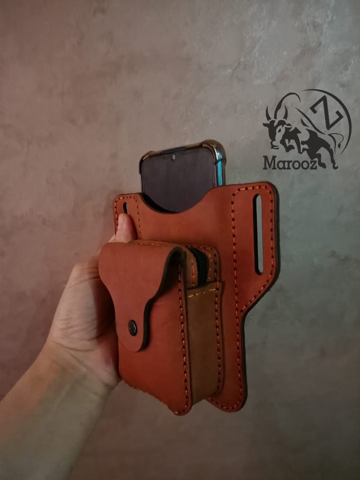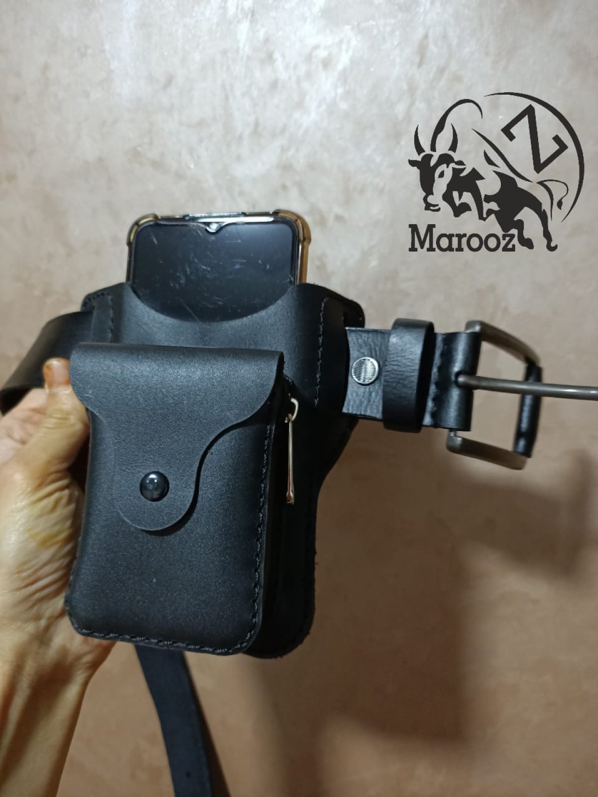 جراب موبايل من الجلد الطبيعي، عملي وأنيق، يركب على الحزام وكمان فيه مكان للشاحن او لعلبة السجائر.