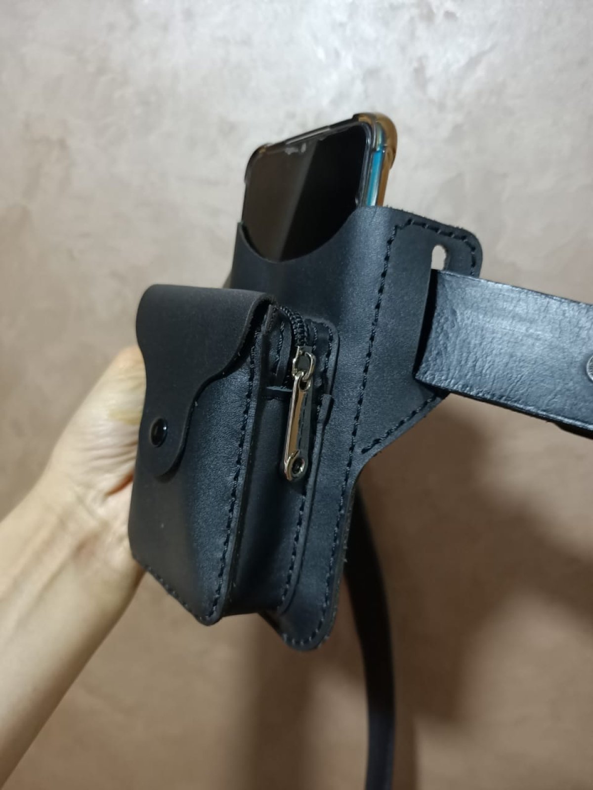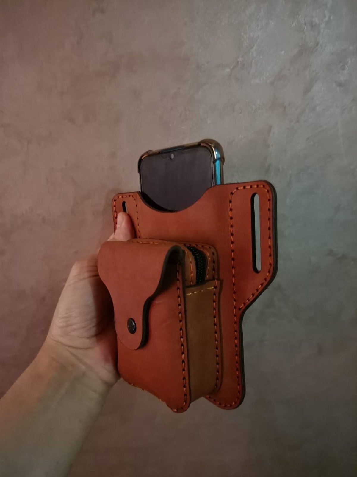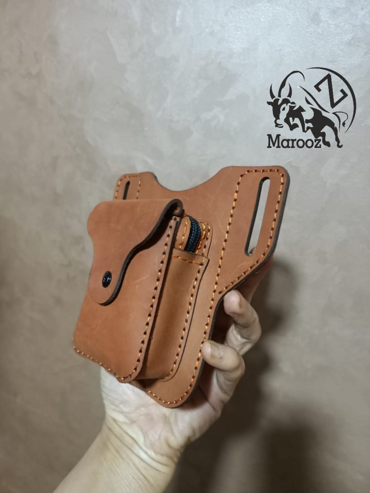 جراب موبايل من الجلد الطبيعي، عملي وأنيق، يركب على الحزام وكمان فيه مكان للشاحن او لعلبة السجائر.