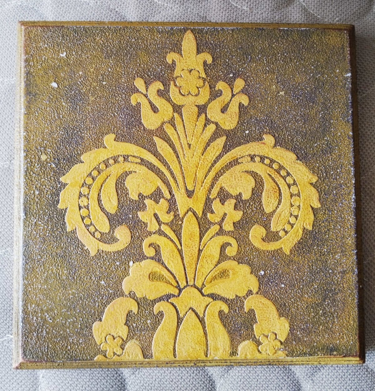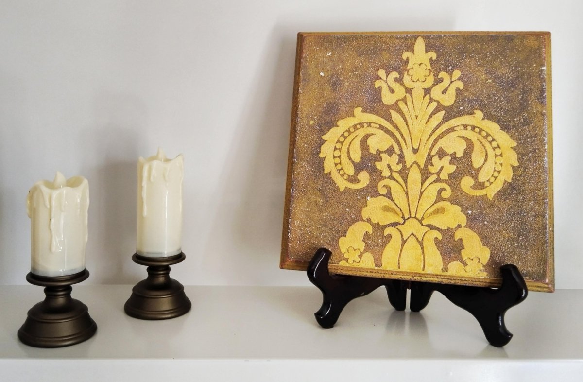 لوحة زخرفية مربعة الشكل تستخدم كقطعة ديكور تعلق على الحائط او توضع على حامل لتضيف لمسة ديكورية جميلة للمنزل