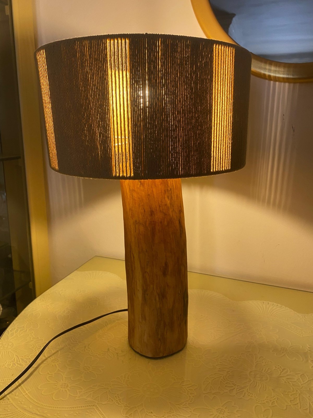 "أباجورة Threaded Light قطعة فنية تجمع بين جمال الخشب الطبيعي وسحر الشابوه المصنوع من الخيوط. ✨ بتدي إحساس دافئ ومريح في أي ركن من البيت، وكمان متاحة بألوان مختلفة حسب اختيارك. اختيارك المثالي لو عايز لمسة تجمع بين الأصالة والذوق العصري