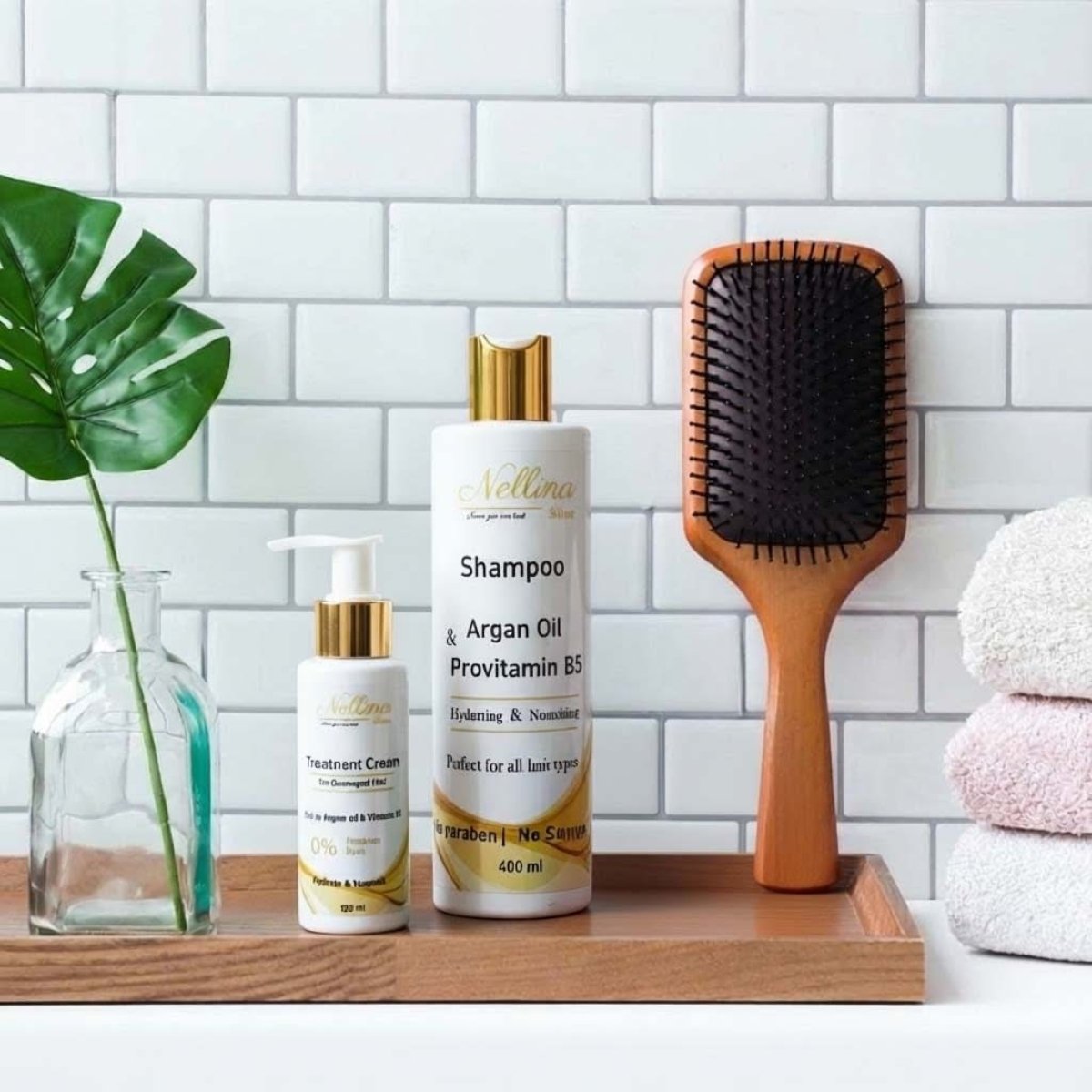 خصم خاص علي مجموعة علاج الشعر من نيلينا شاين : عبارة عن شامبو الارجان خالي من السلفات كريم علاجي للشعر