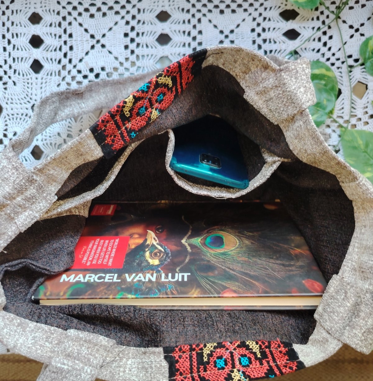 شنطة قماش هاند ميد يوجد جيب داخلى المقاس ٣٠،٣٥ سم