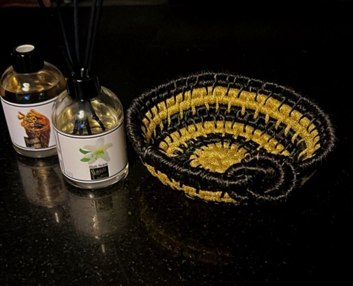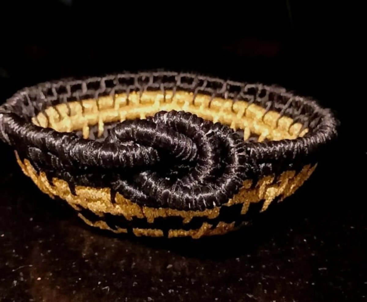 طبق تقديم من المكرمية مع تطعيم السيرما قطعة فنية أنيقة مصنوعة يدويًا من خيوط المكرمية المتينة، ومُزينة بخيوط السيرما اللامعة لإضافة لمسة فاخرة. قطر الطبق 18سم يصلح للاستخدام كطبق تقديم للتمر أو الحلويات، أو كقطعة ديكور مميزة تضيف جمالًا طبيعيًا ممزوجًا بالفخامة. يمكن تنفيذ الطبق بمقاسات وألوان مختلفة حسب الطلب.